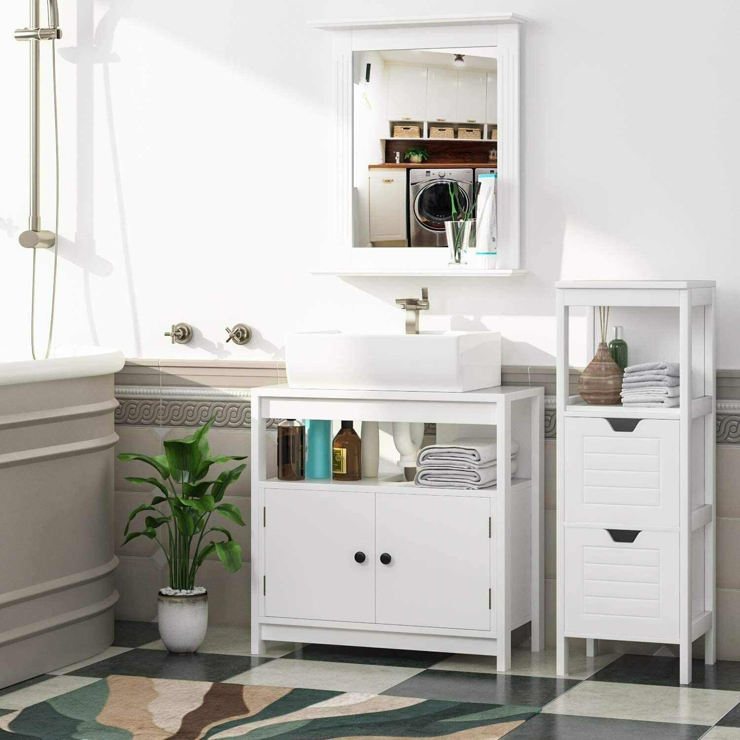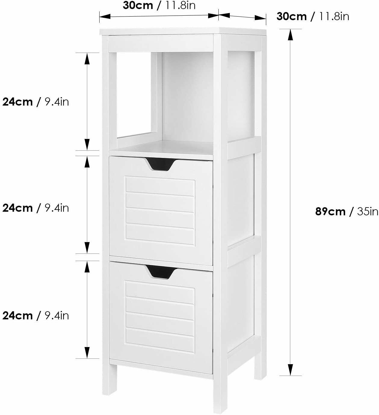 - 【Materiale】: la cassettiera del bagno è realizzata in pannelli di fibra a media densità (grado E1), con superficie liscia, a prova di umidità e muffa e di lunga durata.