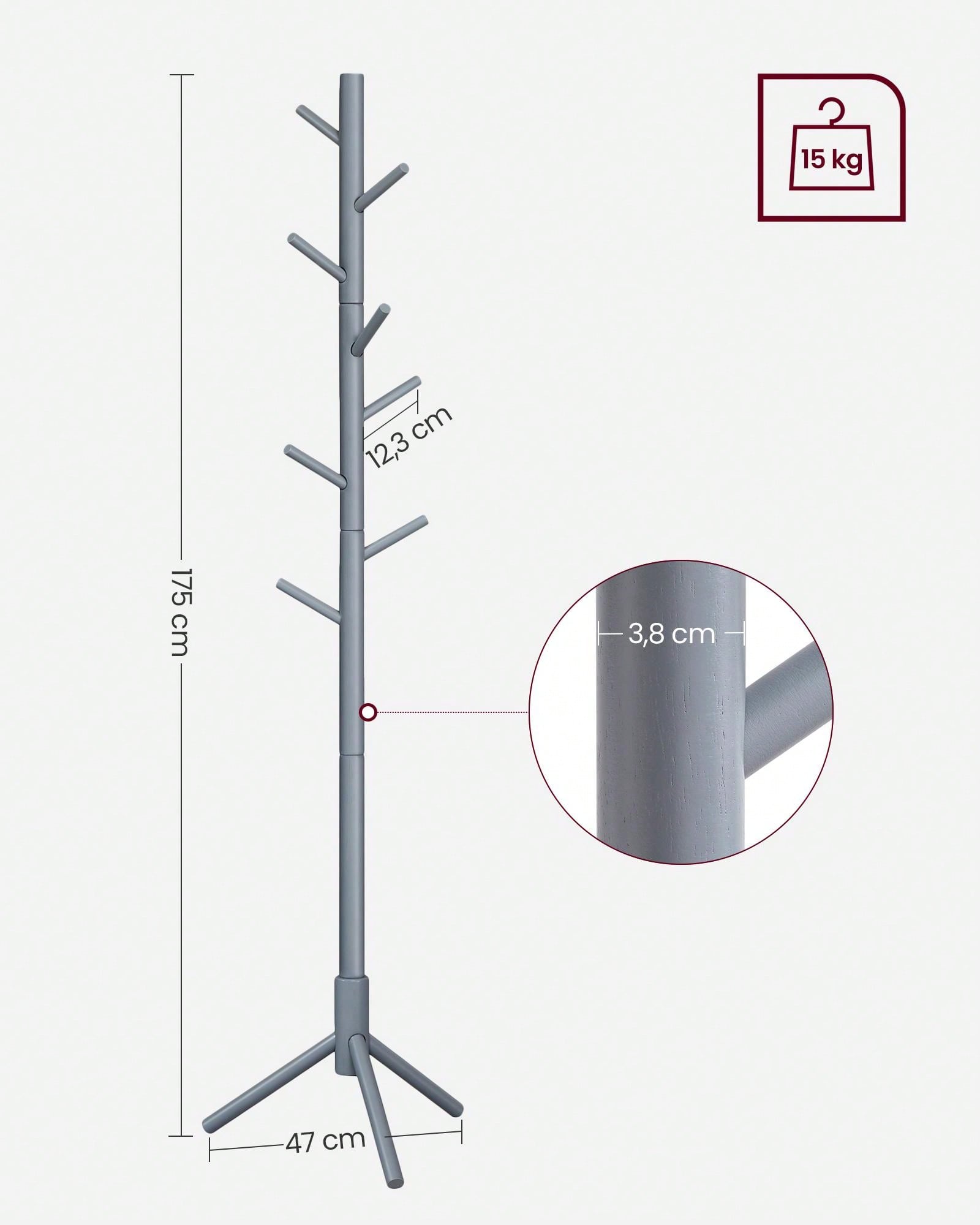 Attaccapanni da Terra Appendiabiti in Legno a Forma di Albero 8 Ganci 3 Altezze Regolabili