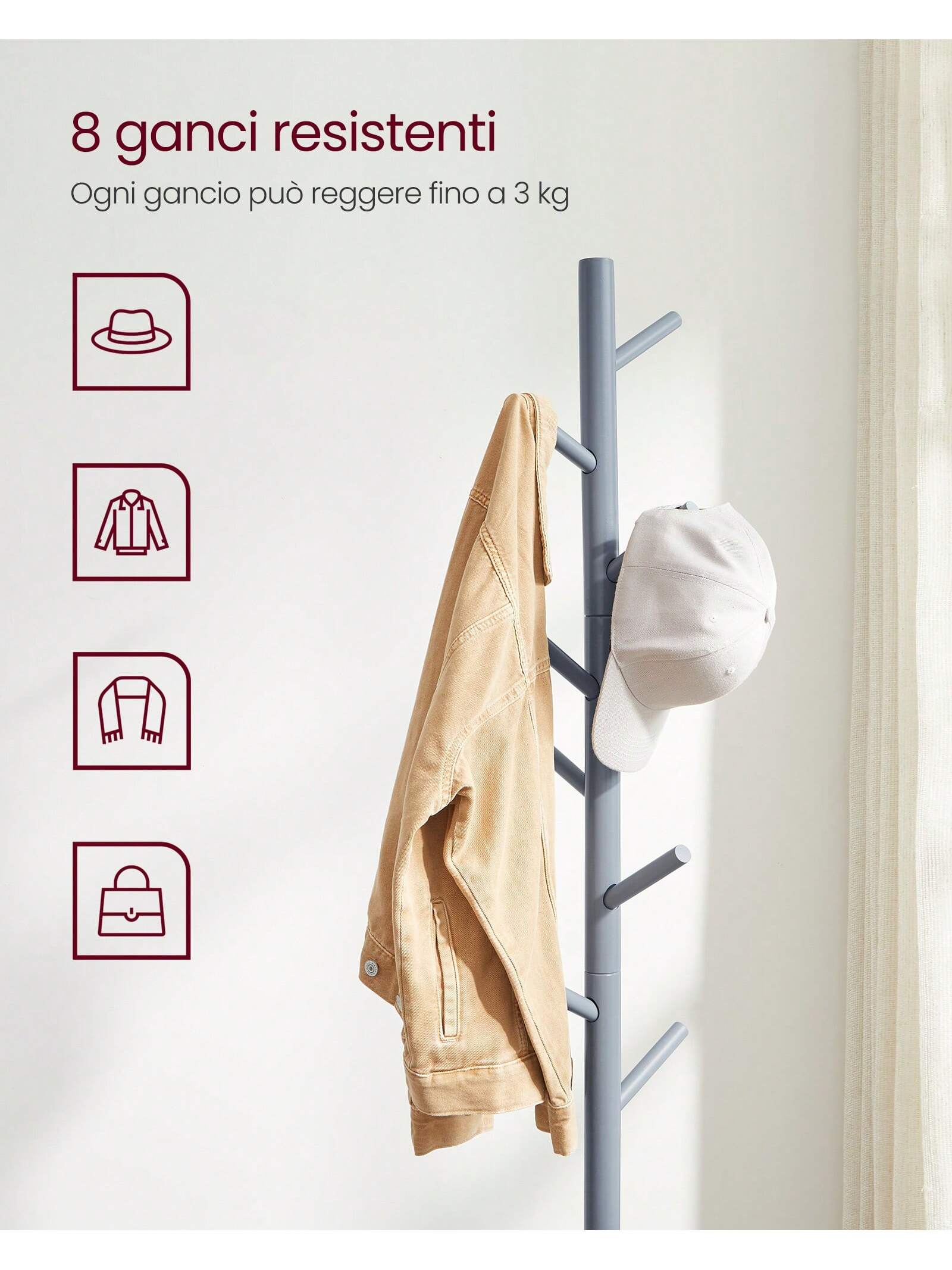 Gli 8 ganci permettono di appendere cappotti, borse e sciarpe e tenerli a portata di mano
