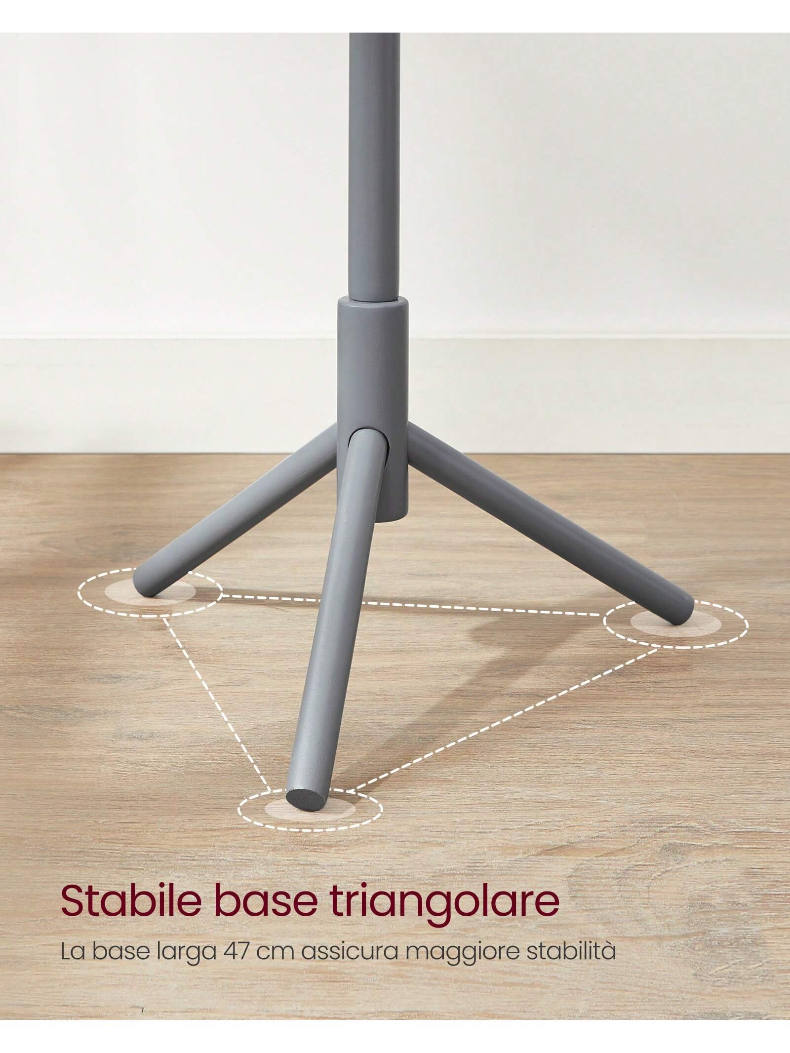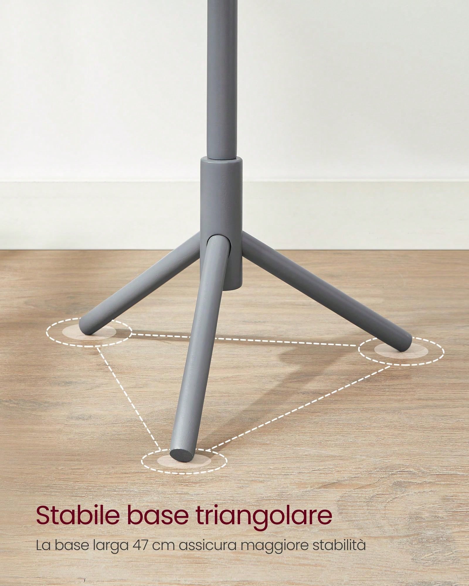 [Treppiede stabile] La stabilità è il primo requisito per un appendiabiti a piedi. La base triangolare larga 47 cm è solida. Questo appendiabiti supporta fino a 15 kg
