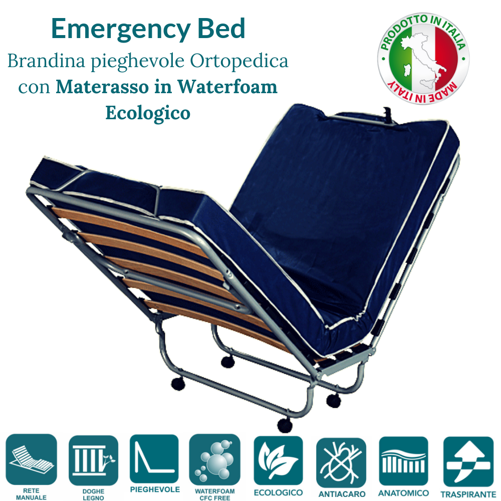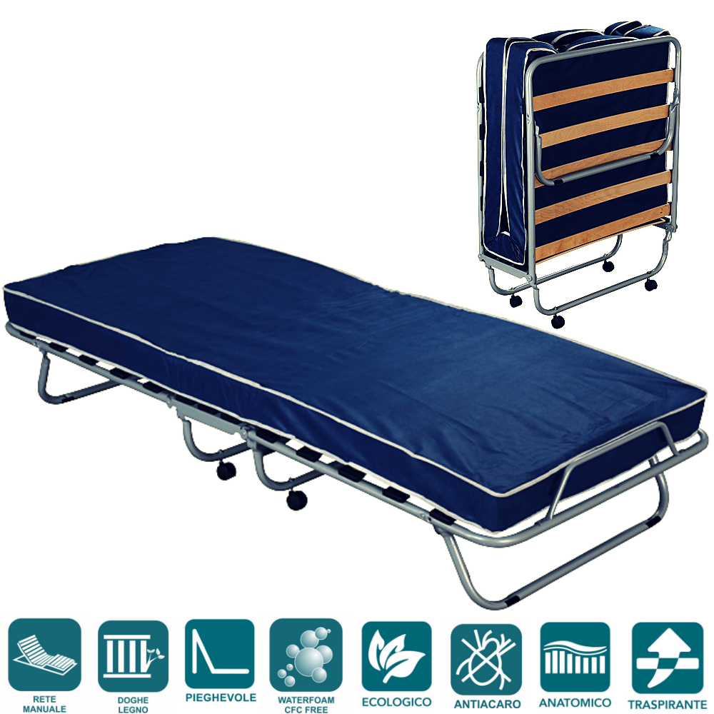 • Kit Letto Singolo Pieghevole con Materasso in Waterfoam 80x190 alto 10 cm, MATERASSO Ortopedico con Rivestimento Traspirante, tessuto Anallergico e Antiacaro, Lastra interna in Water Foam ad alta resilienza, poliuretano in schiuma espansa ad acqua, per donare il giusto sostegno alla colonna vertebrale.