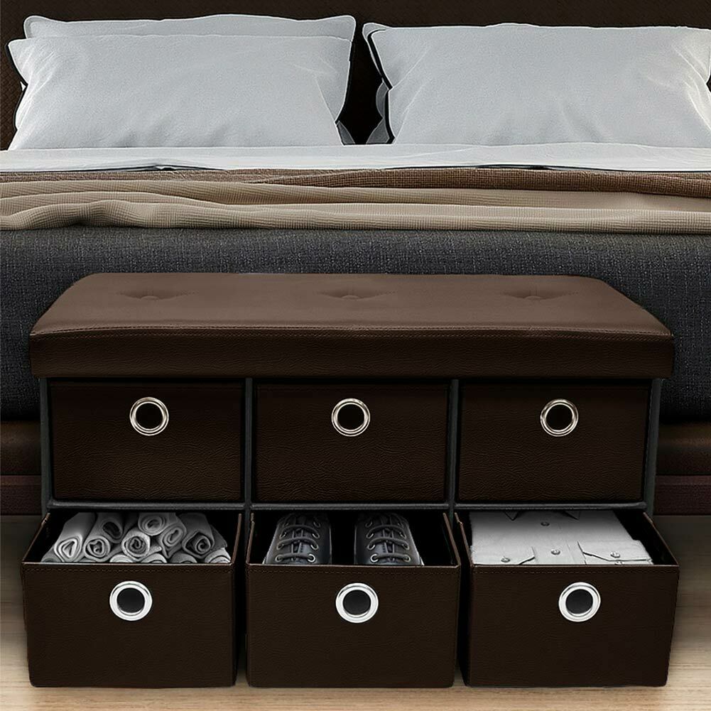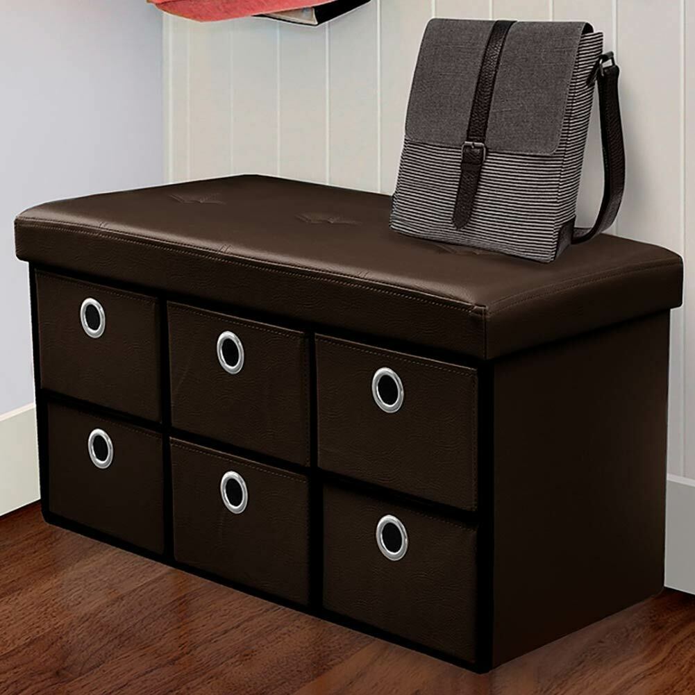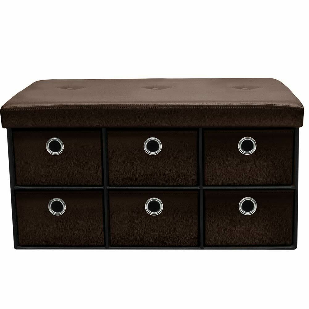 1 x Cassapanca Contenitore Pouf Panca Sgabello Pieghevole 6 Cassetti Eco Pelle Moro