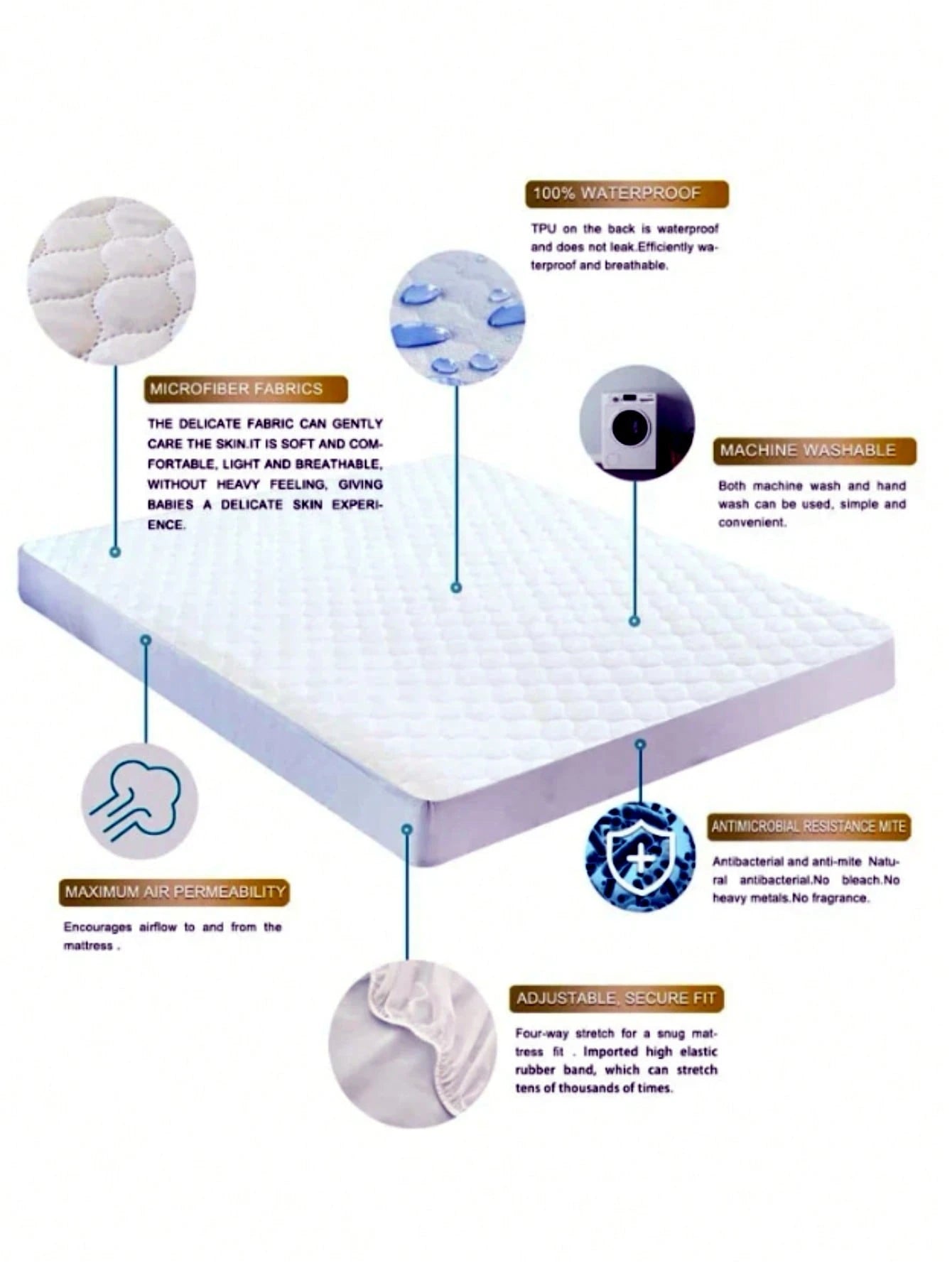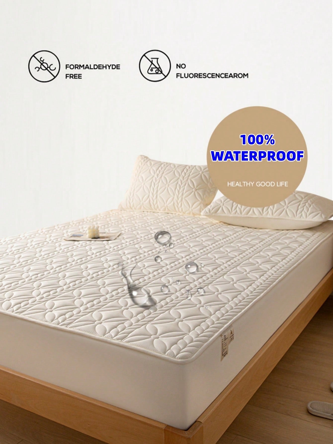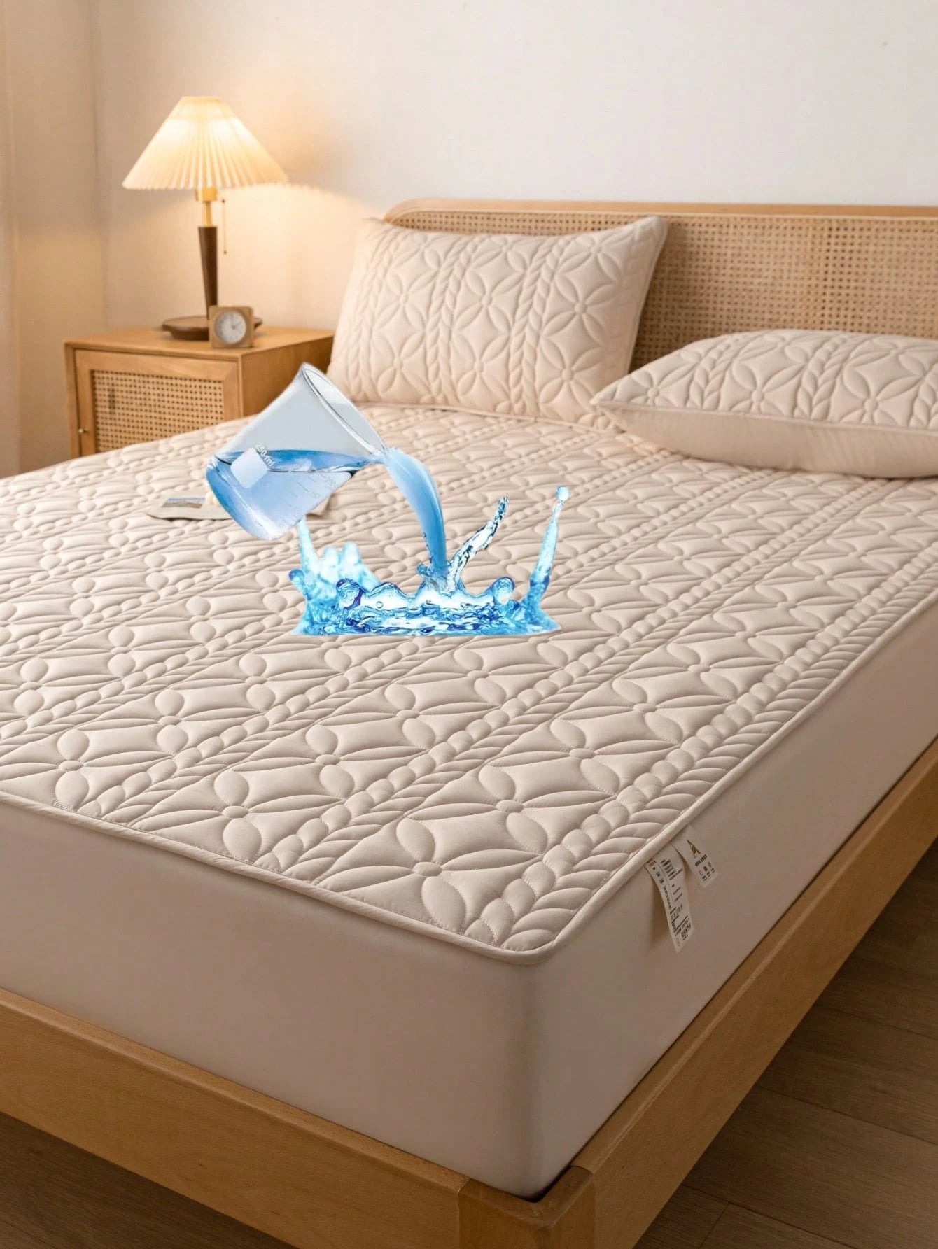 Proteggi il tuo materasso con questo coprimaterasso trapuntato in poliestere impermeabile, progettato per offrire una protezione completa e duratura.