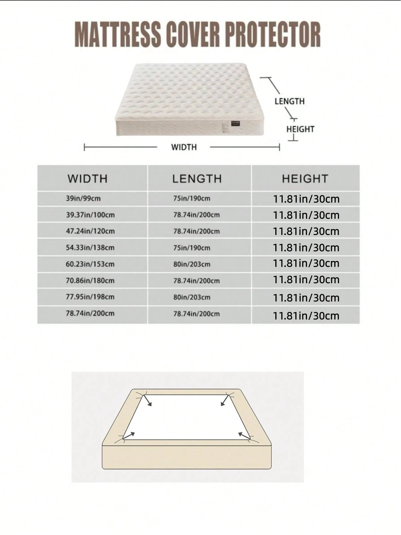 La copertura con lenzuolo elasticizzato si adatta perfettamente a qualsiasi materasso, garantendo una vestibilità sicura e stabile.