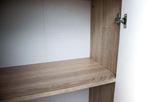 Questo moderno comò è disponibile in 2 diverse finiture. È disponibile in legno laminato di quercia Sonoma chiara e bianco, così come legno laminato di cemento d’imitazione e bianco. Entrambe le colorazioni hanno un effetto elegante e sono un arricchimento del rispettivo ambiente. Il ripiano superiore gli conferisce un aspetto...