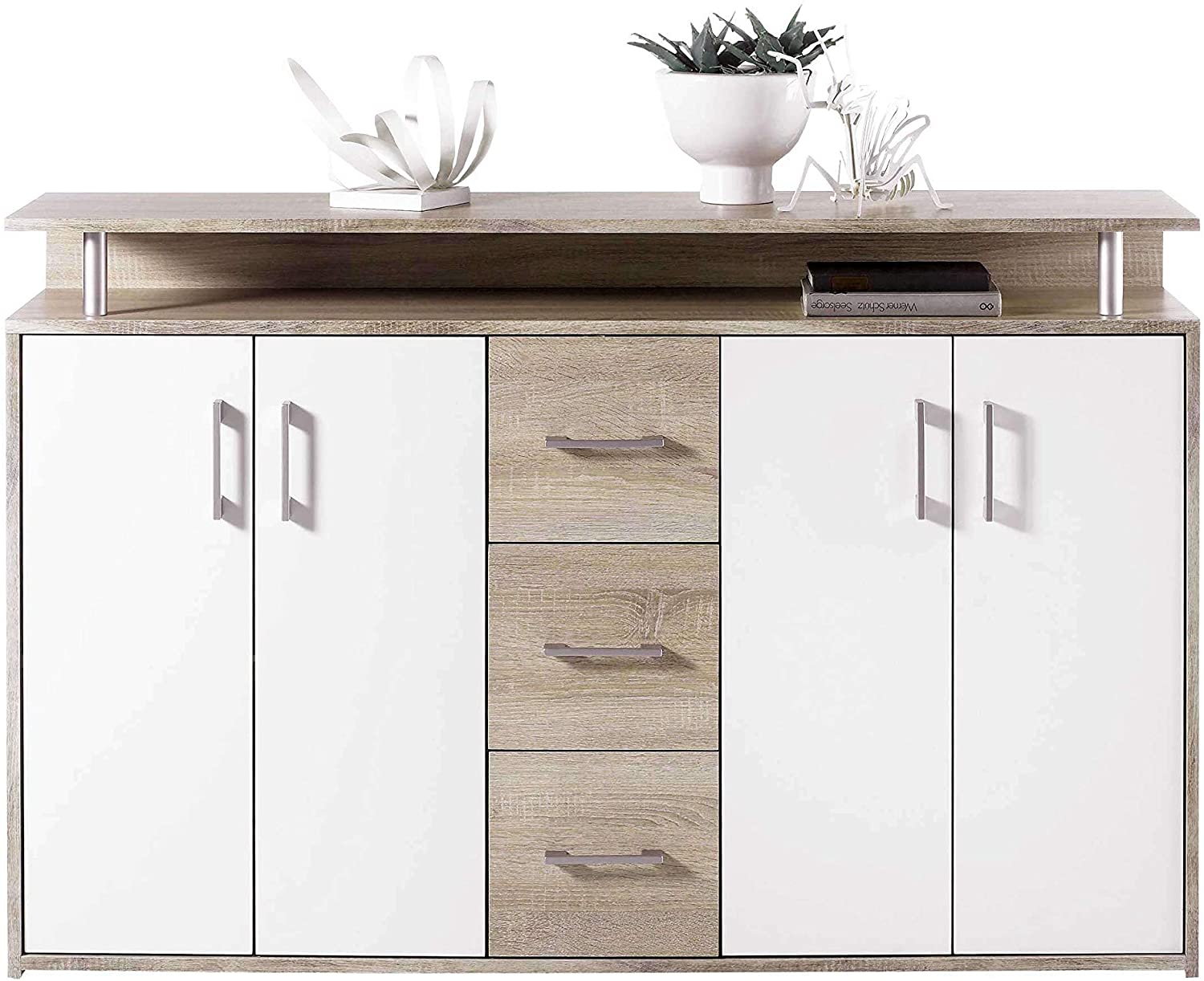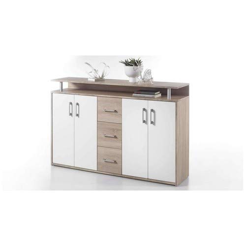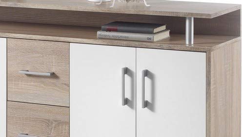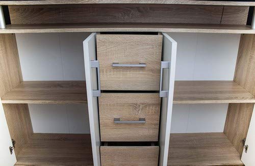 Credenza Sonoma / bianco con 1 ripiano aperto, 3 cassetti e 4 ante