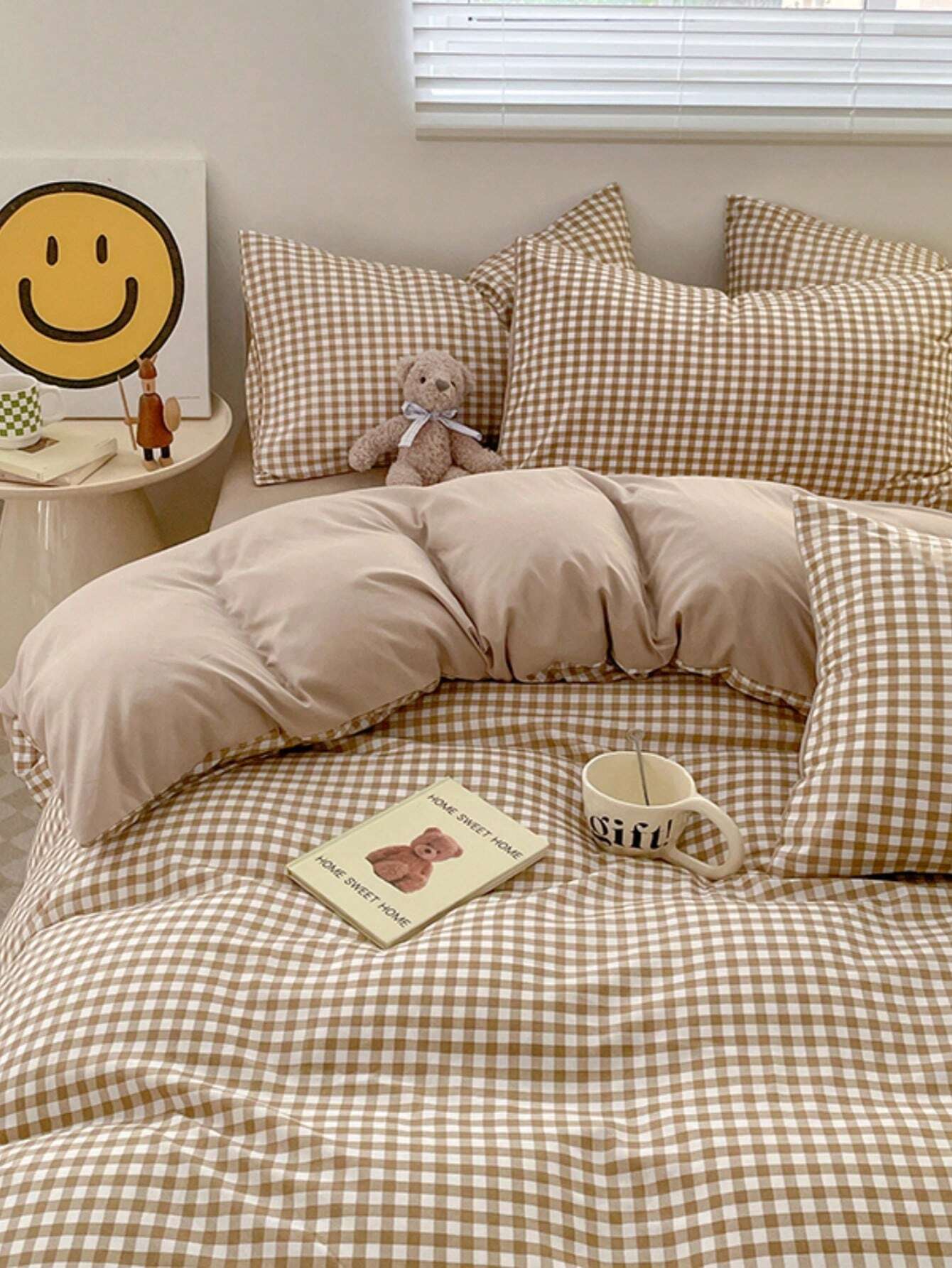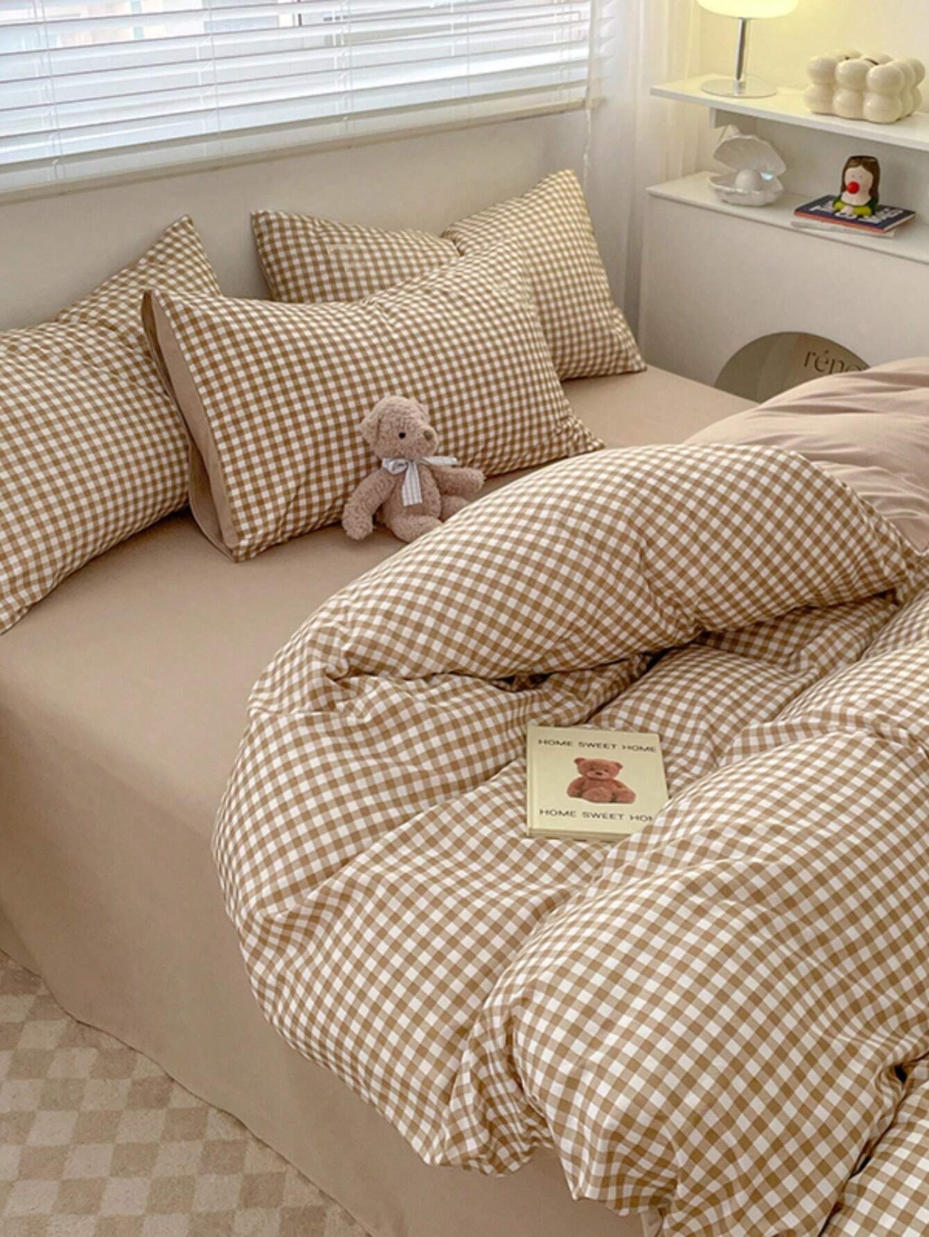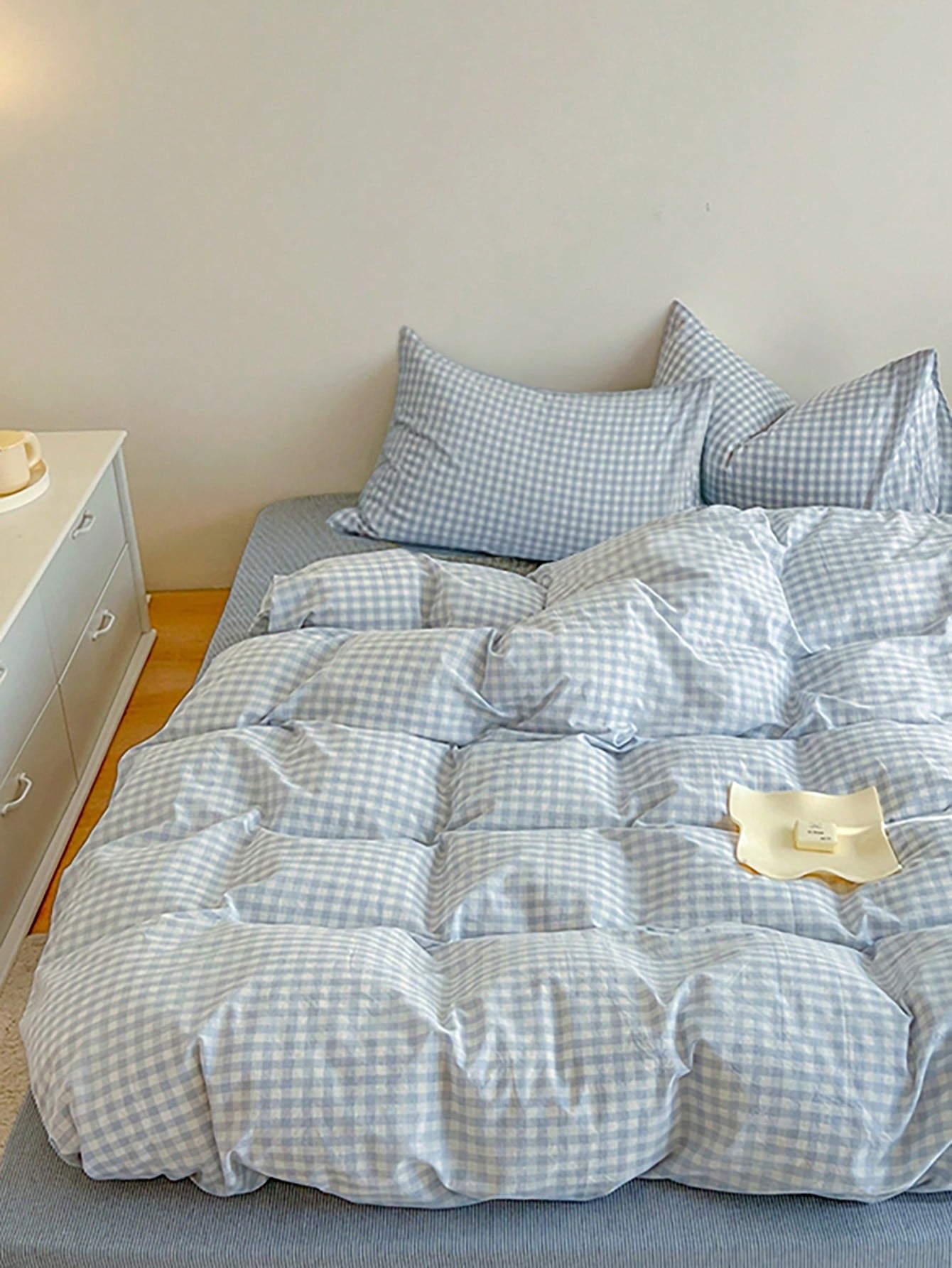 Set piumino stile nordico con motivo a quadri semplice - 2 federe + 1 copripiumino (senza lenzuolo)