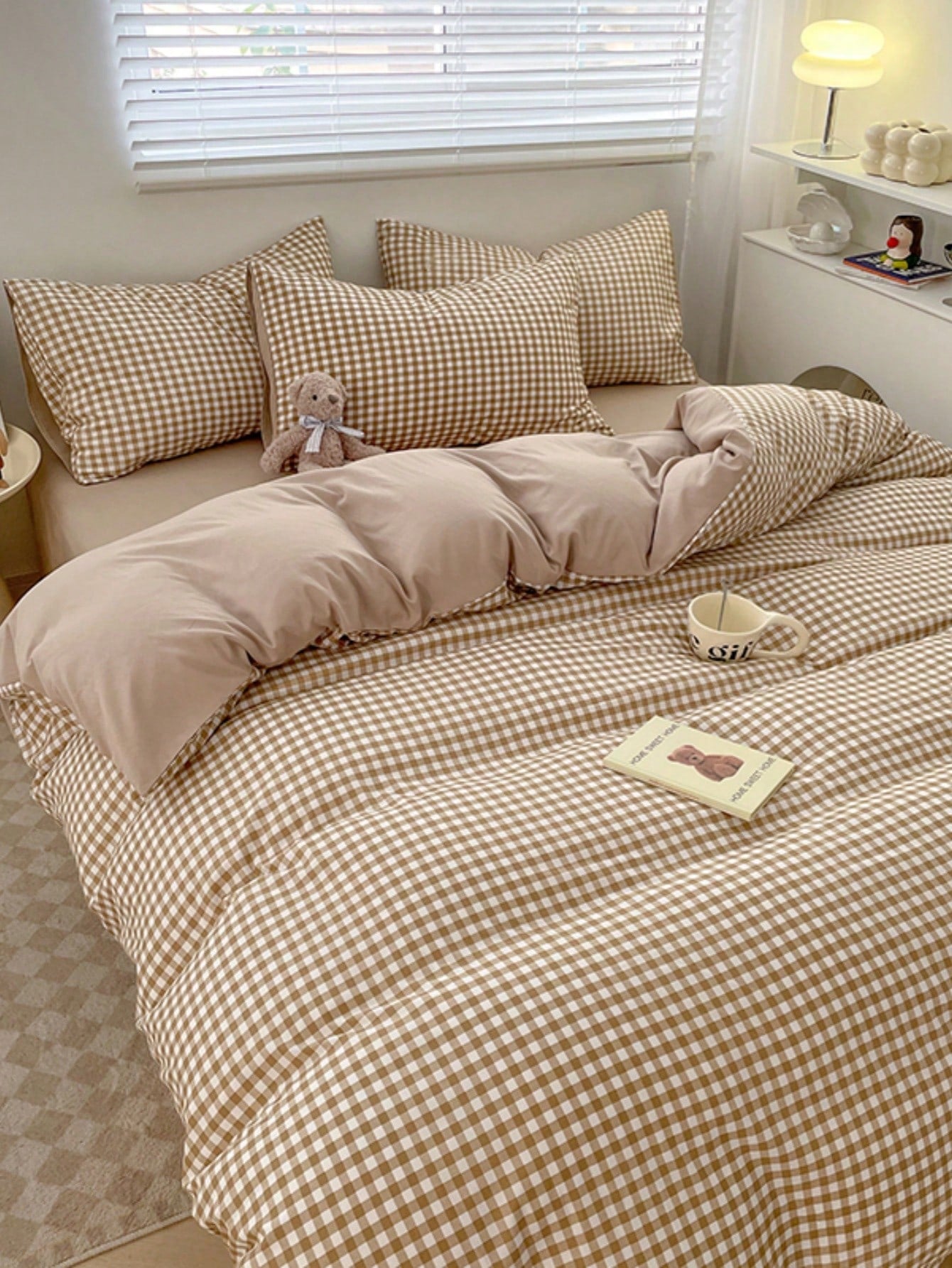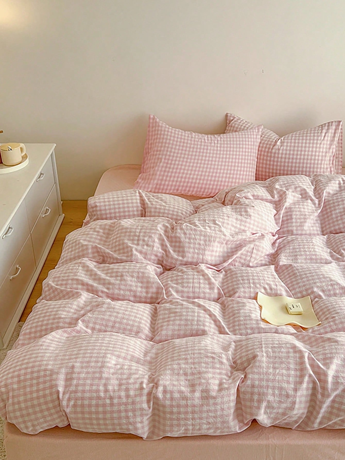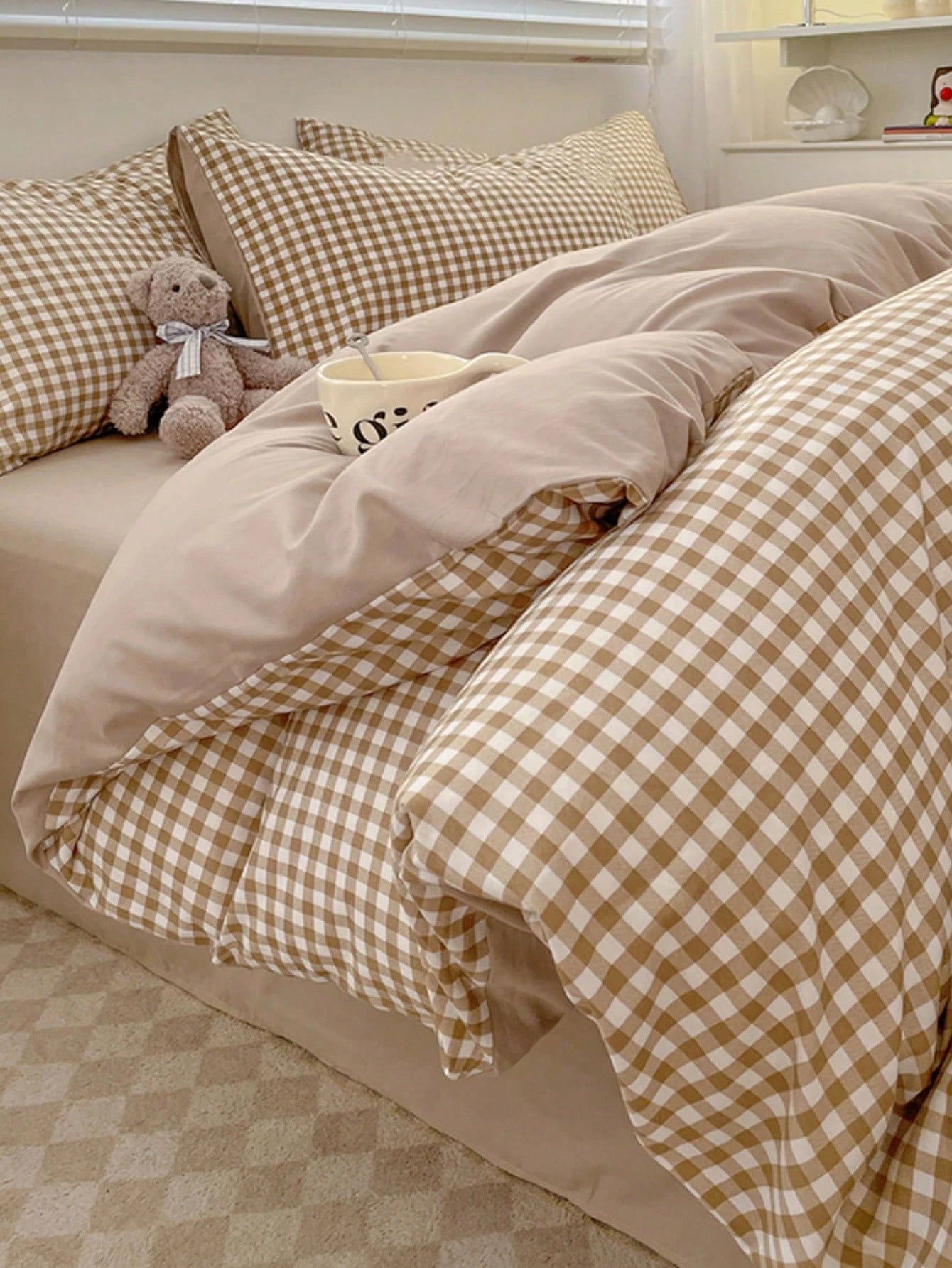 Set piumino stile nordico con motivo a quadri semplice - 2 federe + 1 copripiumino (senza lenzuolo)