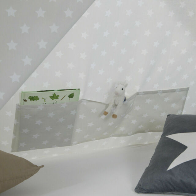 Tessuto in cotone grigio stampato con stelle bianche, staccabile