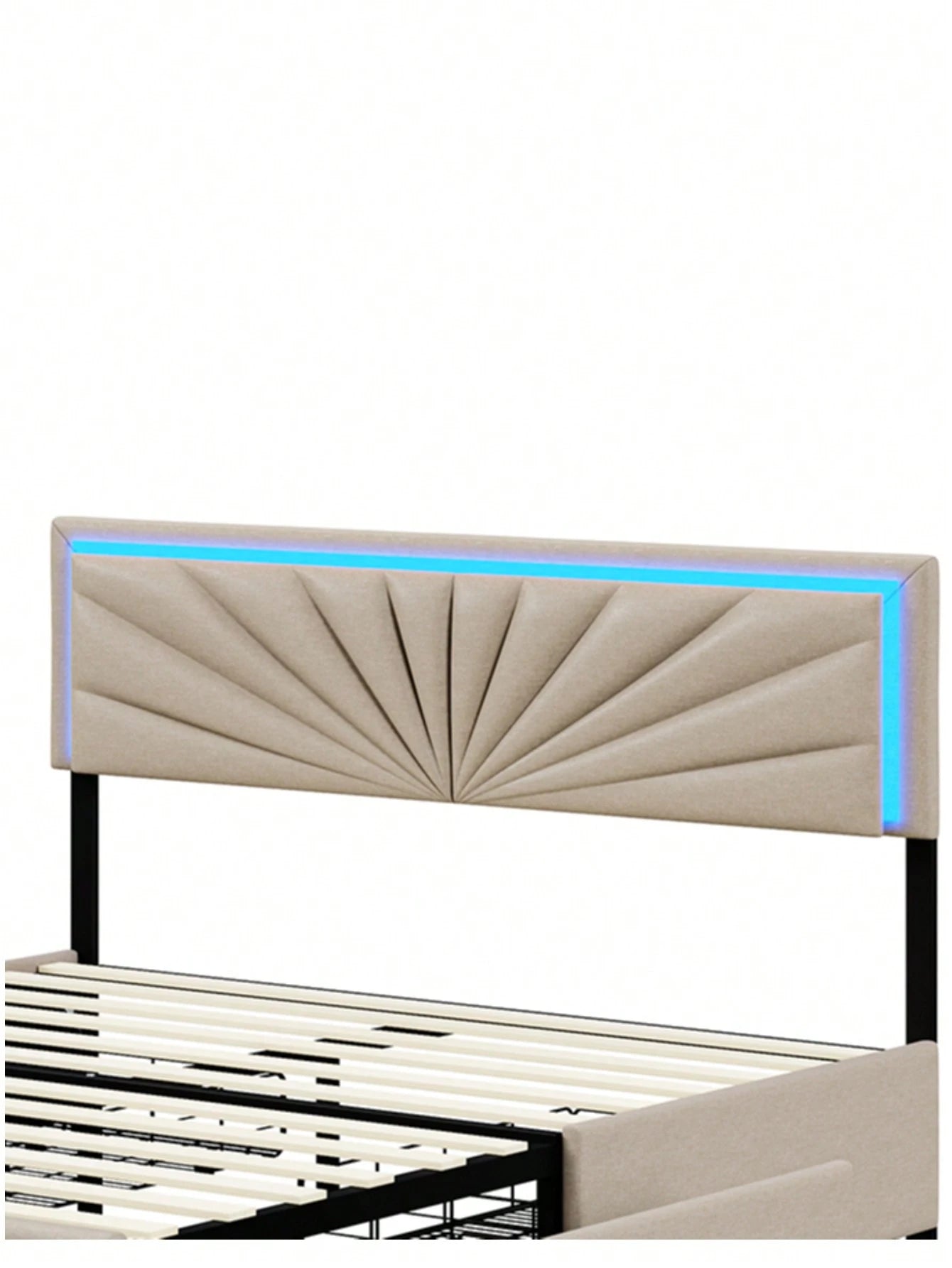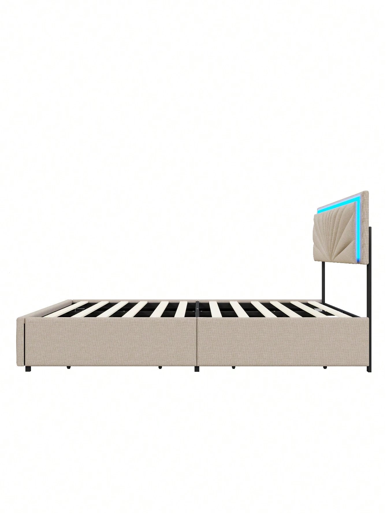 Letto matrimoniale imbottito, letto per ragazzo, letto in lino beige con 4 cassetti e testiera