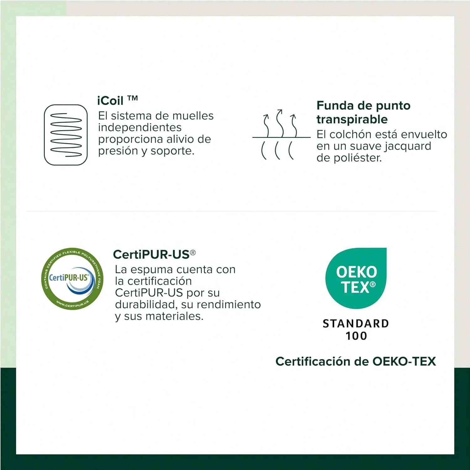 Scopri il comfort superiore con questo materasso ibrido innovativo, che combina la tecnologia delle molle insacchettate con il supporto ergonomico del memory foam.