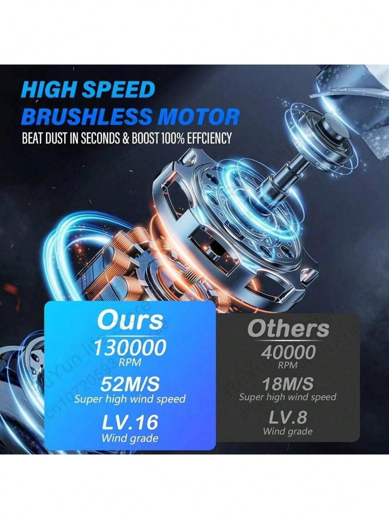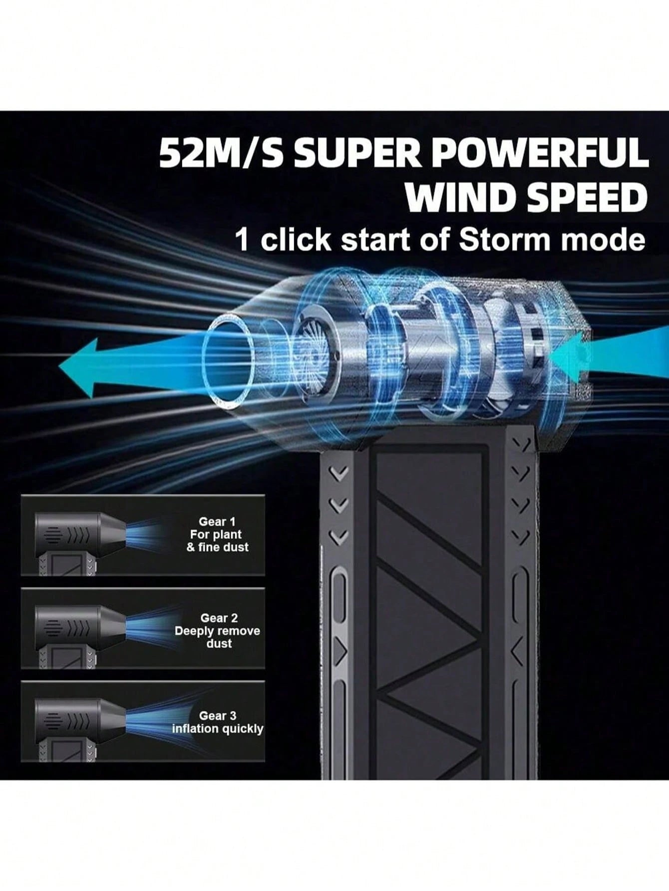 Questo mini ventilatore a turbina è il tuo nuovo alleato versatile! Con 130.000 giri/min e un potente motore brushless, genera una velocità del vento di 52m/s che non lascia nulla al suo posto.