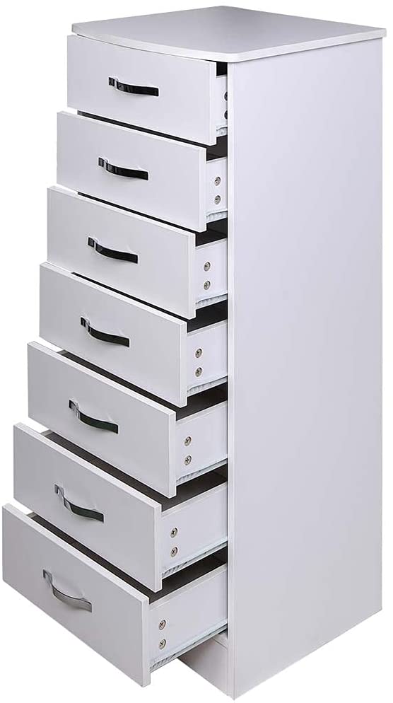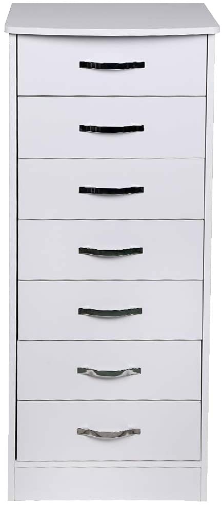 Mobile Cassettiera Mobiletto 7 Cassetti Settimino in Legno MDF Pomelli in Metallo Design Moderno