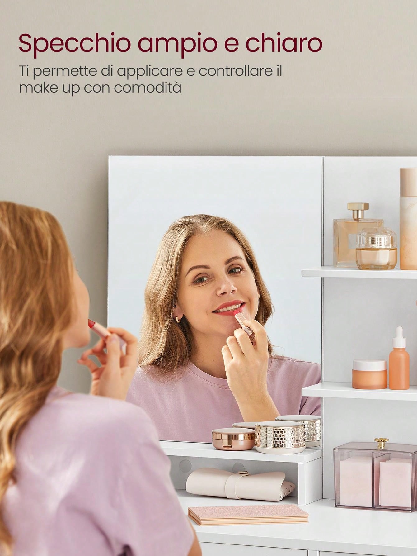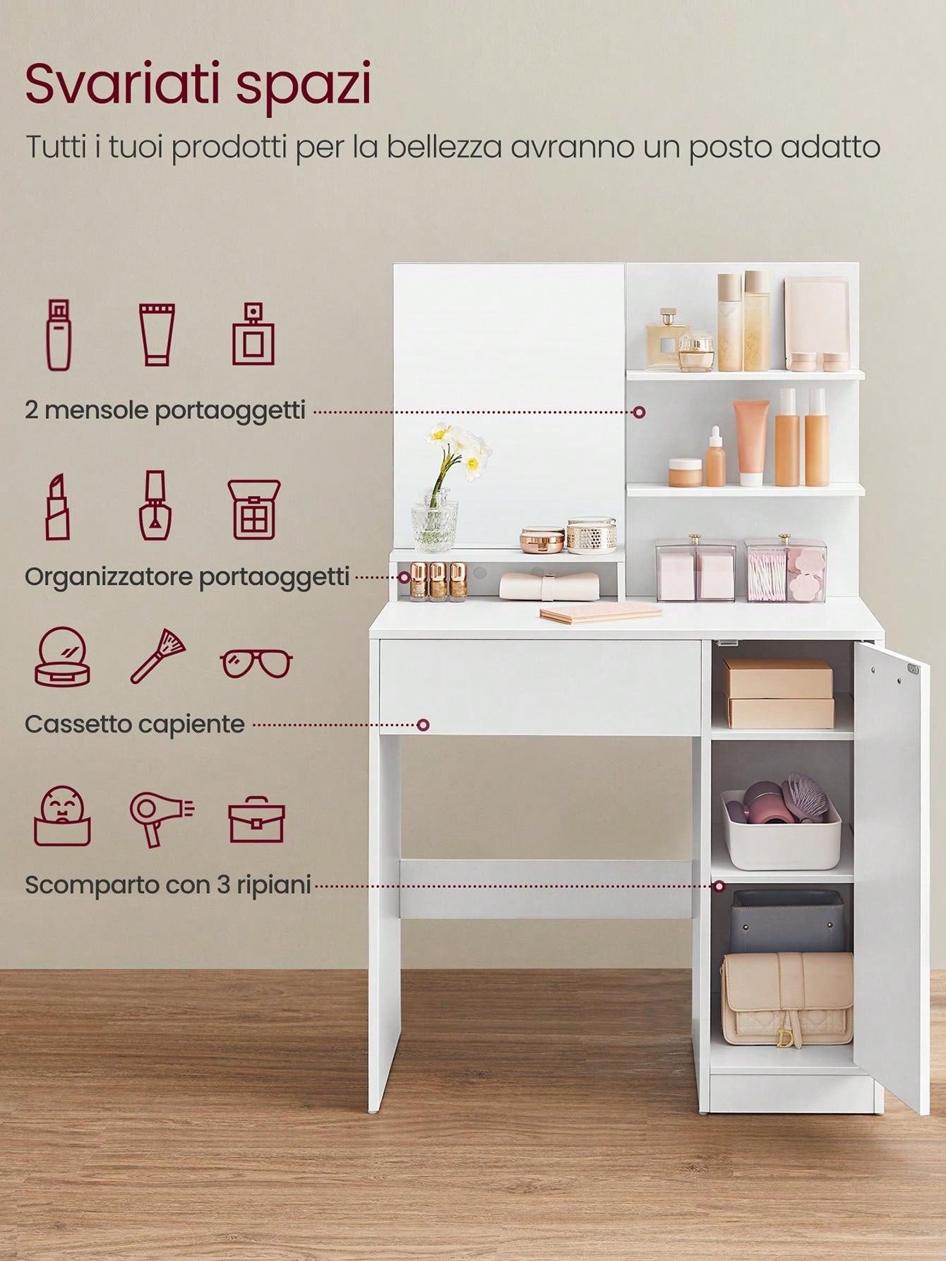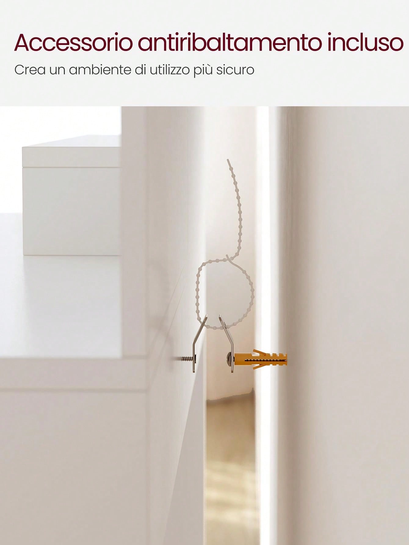 [Accessorio antiribaltamento per maggiore sicurezza] Fissa la postazione trucco a parete con l'accessorio antiribaltamento incluso per creare un ambiente più sicuro