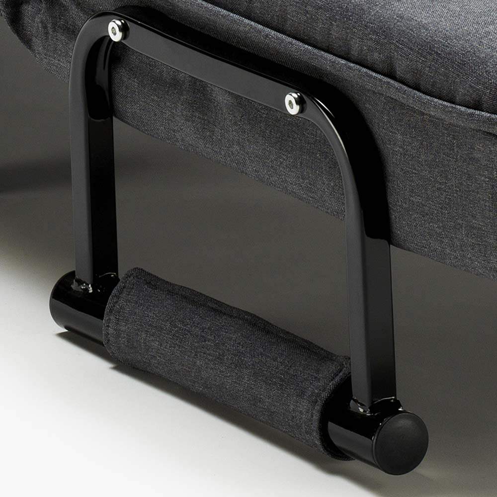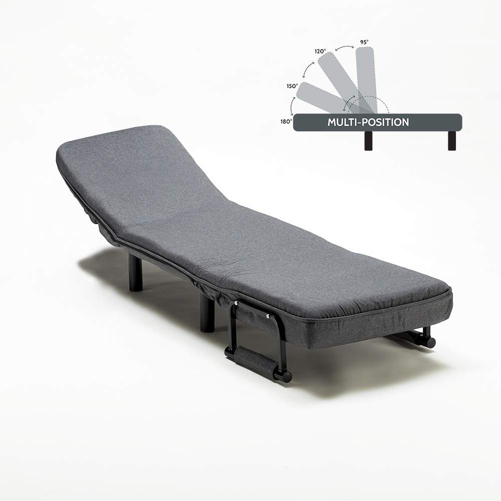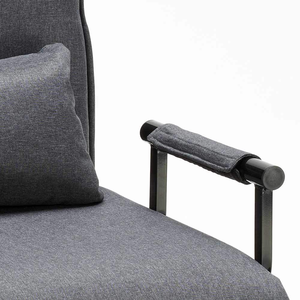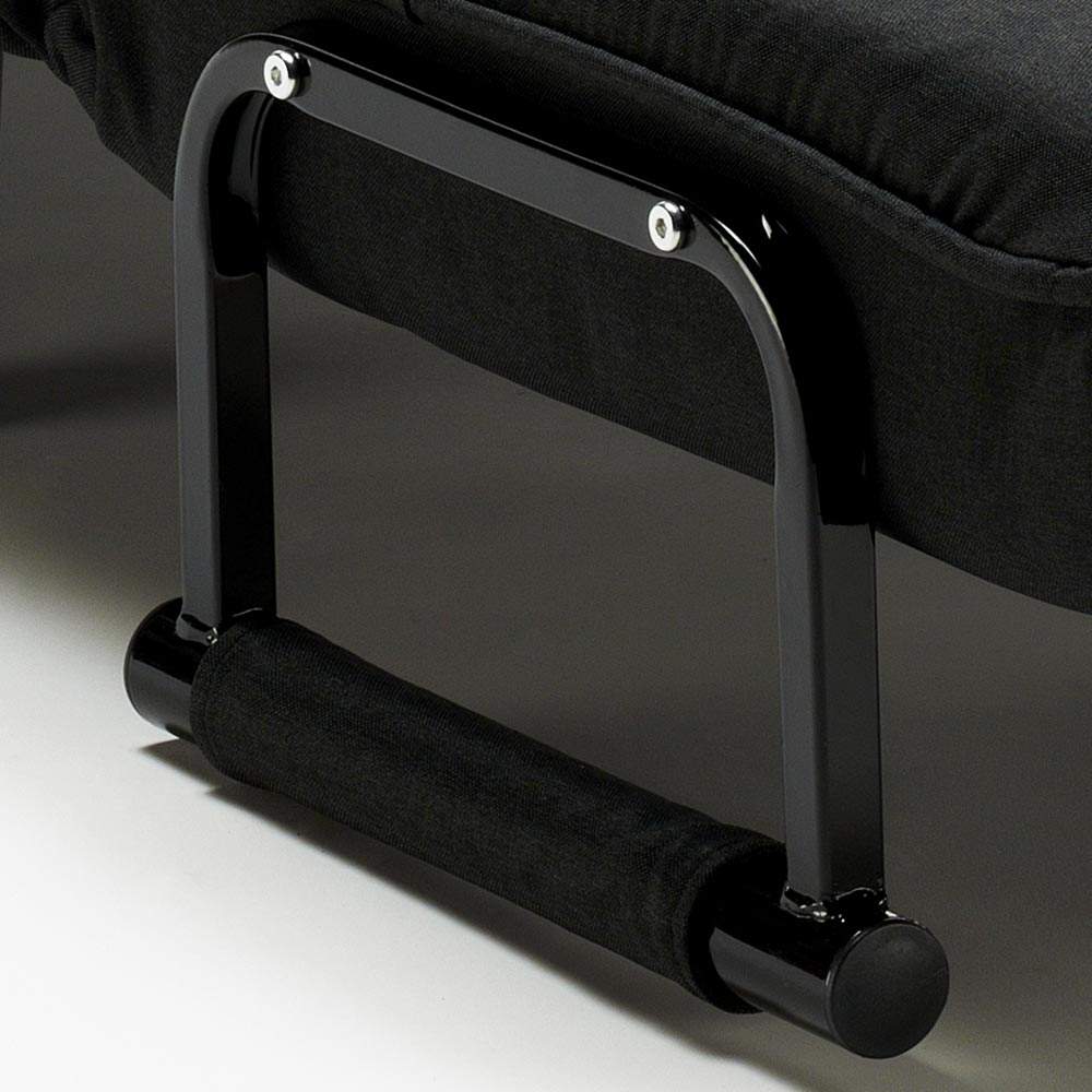 Poltrona ha al suo interno una brandina pieghevole che raggiunge i 190 cm di lunghezza, perfetta per chi deve organizzare i propri spazi e ha necessità di un prodotto che garantisca il minimo ingombro possibile.