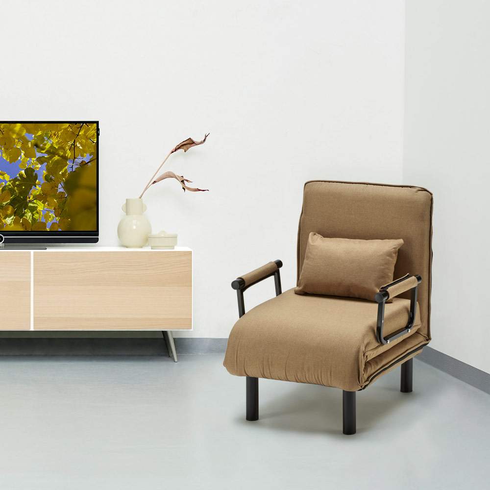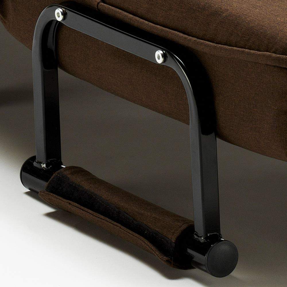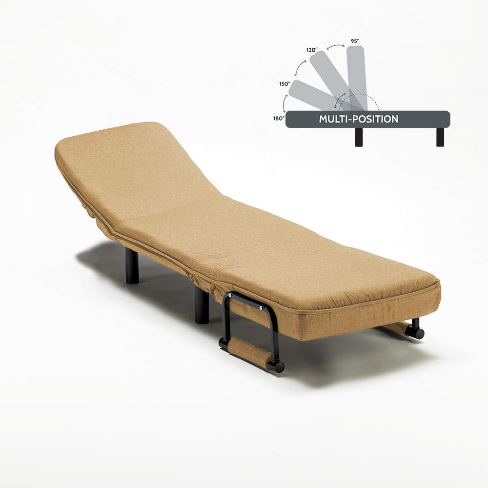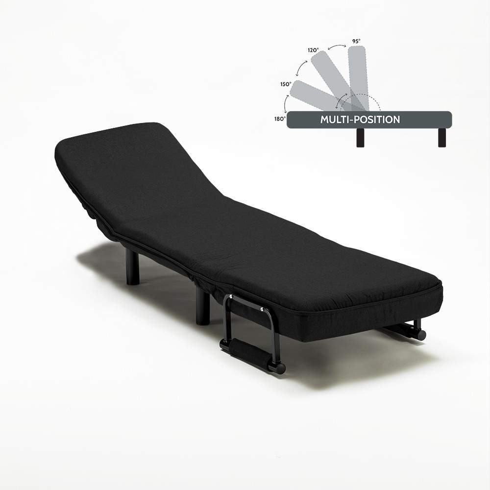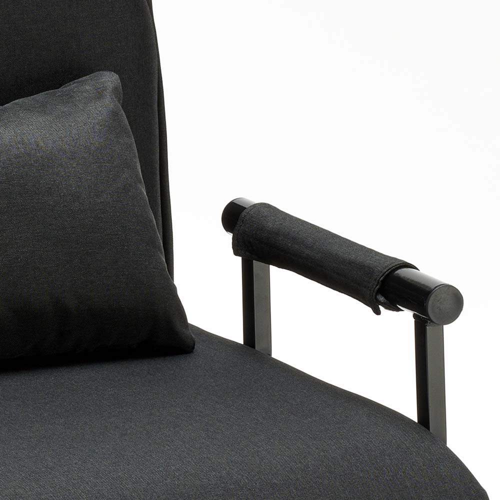 Poltrona ha al suo interno una brandina pieghevole che raggiunge i 190 cm di lunghezza, perfetta per chi deve organizzare i propri spazi e ha necessità di un prodotto che garantisca il minimo ingombro possibile.