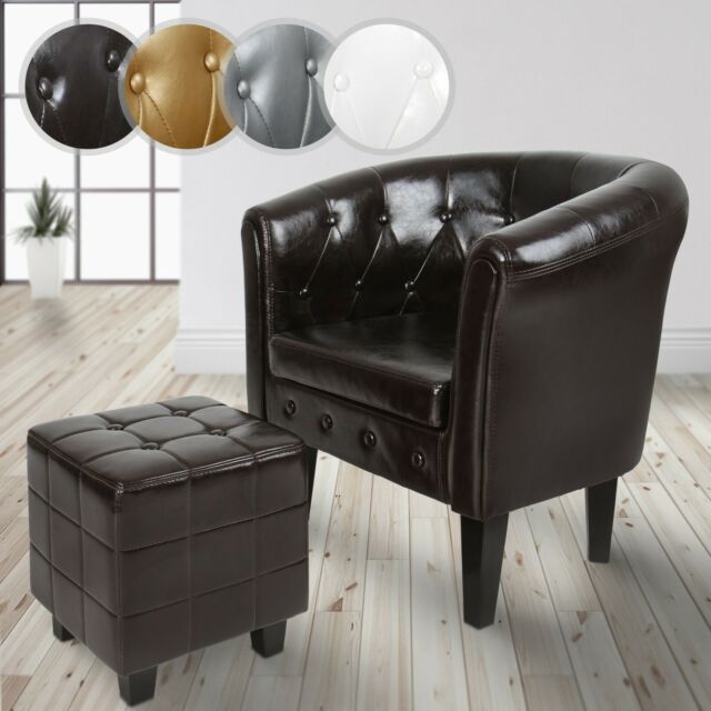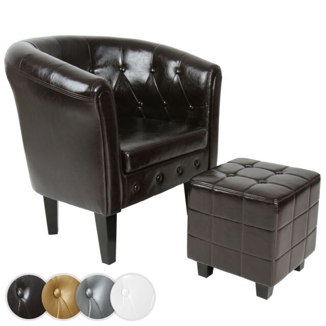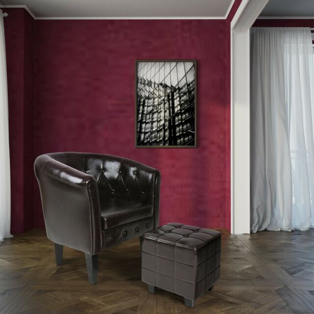 Poltrona Chesterfield con poggiapiedi - Mobili alla moda Alzate i piedi per un meritato riposo: questa poltrona regala puro piacere di seduta e con il suo poggiapiedi crea ulteriore comfort. Entrambi i mobili sono realizzati in legno robusto, similpelle di facile manutenzione e imbottitura in schiuma morbida e resistente.