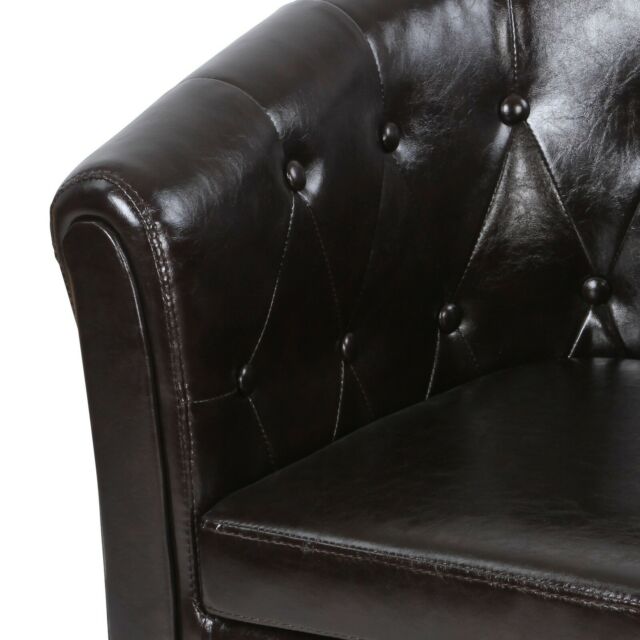 Poltrona Chesterfield con poggiapiedi - Mobili alla modaAlzate i piedi per un meritato riposo: questa poltrona regala puro piacere di seduta e con il suo poggiapiedi crea ulteriore comfort. Entrambi i mobili sono realizzati in legno robusto, similpelle di facile manutenzione e imbottitura in schiuma morbida e resistente. Set di...