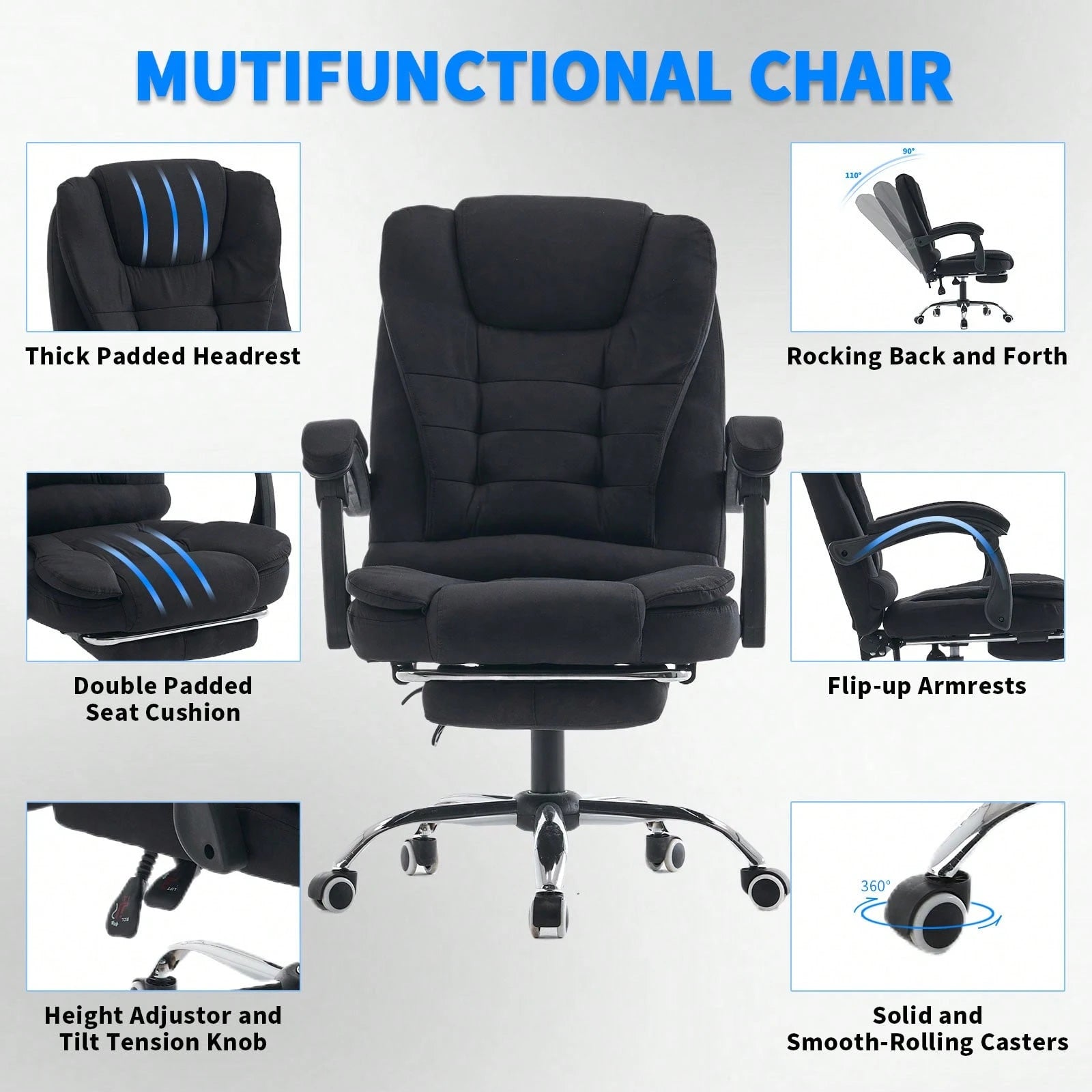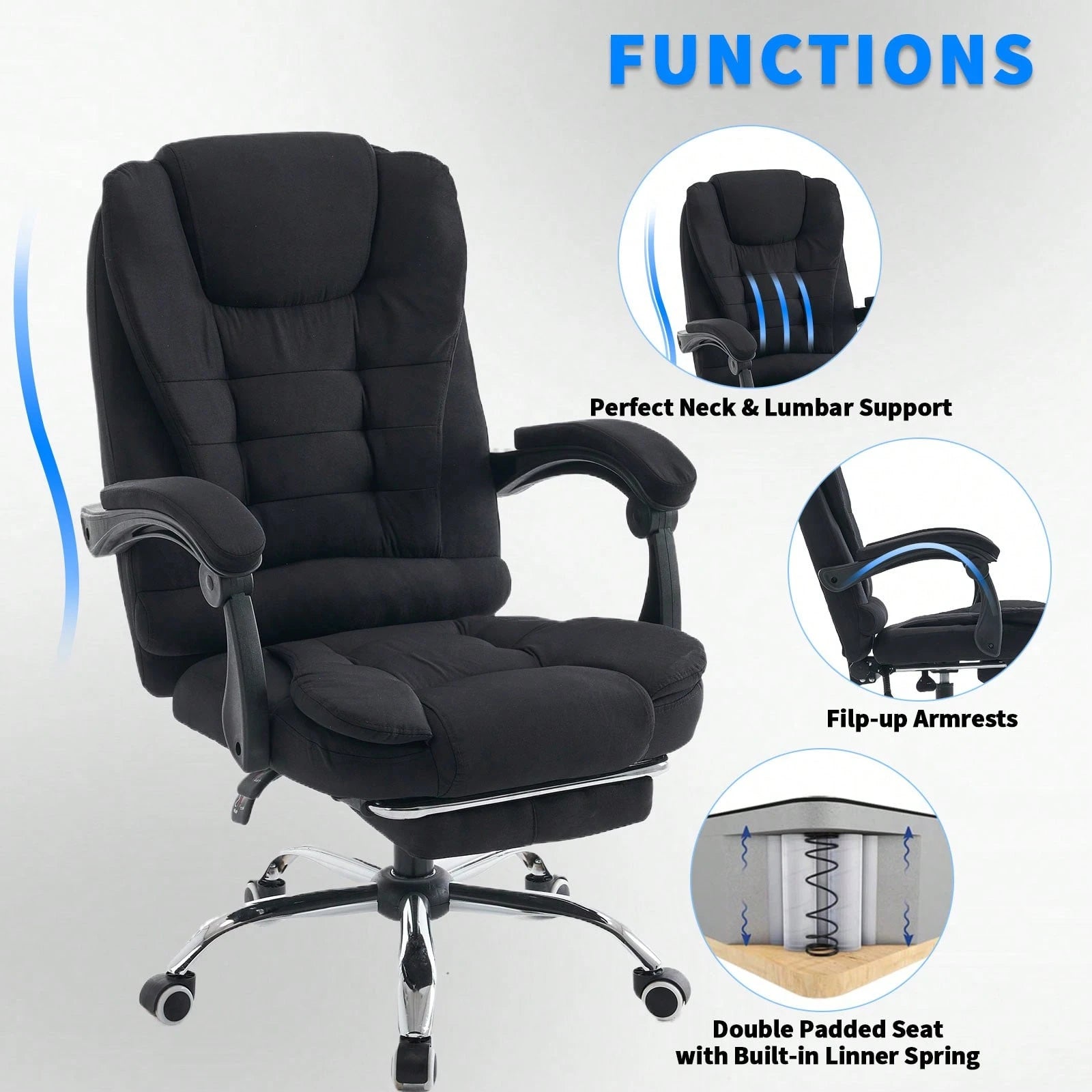 Dotata di supporto lombare anatomico che riduce l'affaticamento della schiena e seduta imbottita per un'esperienza di seduta superiore.