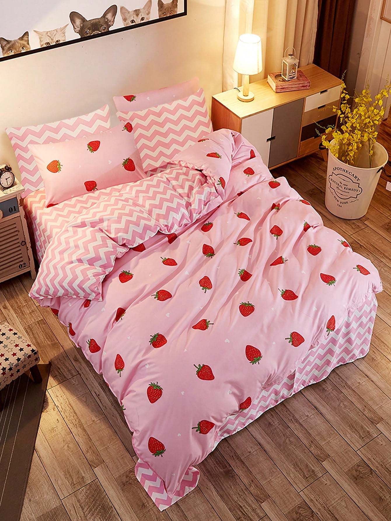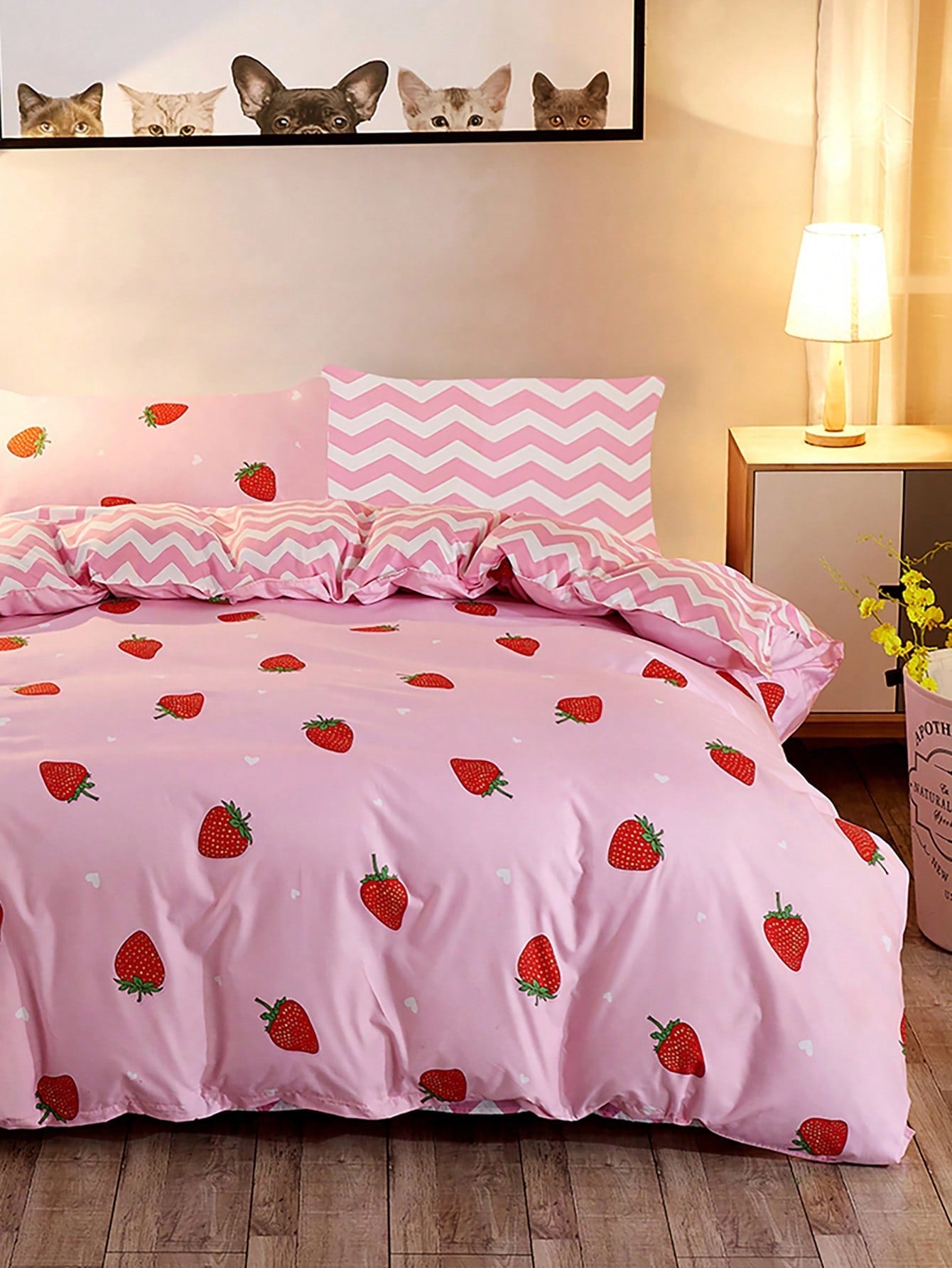 Set di copripiumino per bambini con stampa di fragole, composto da 3 pezzi con federa