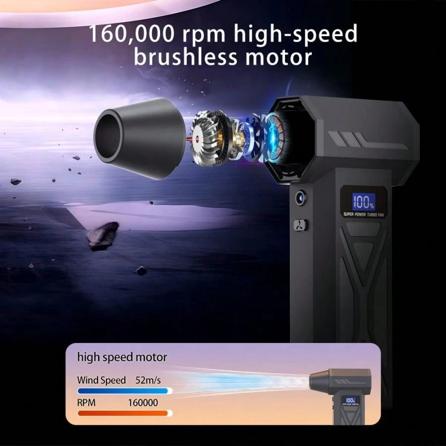 Soffiatore elettrico senza fili Turbo Hurricane a 160.000 giri/min, pressione del vento