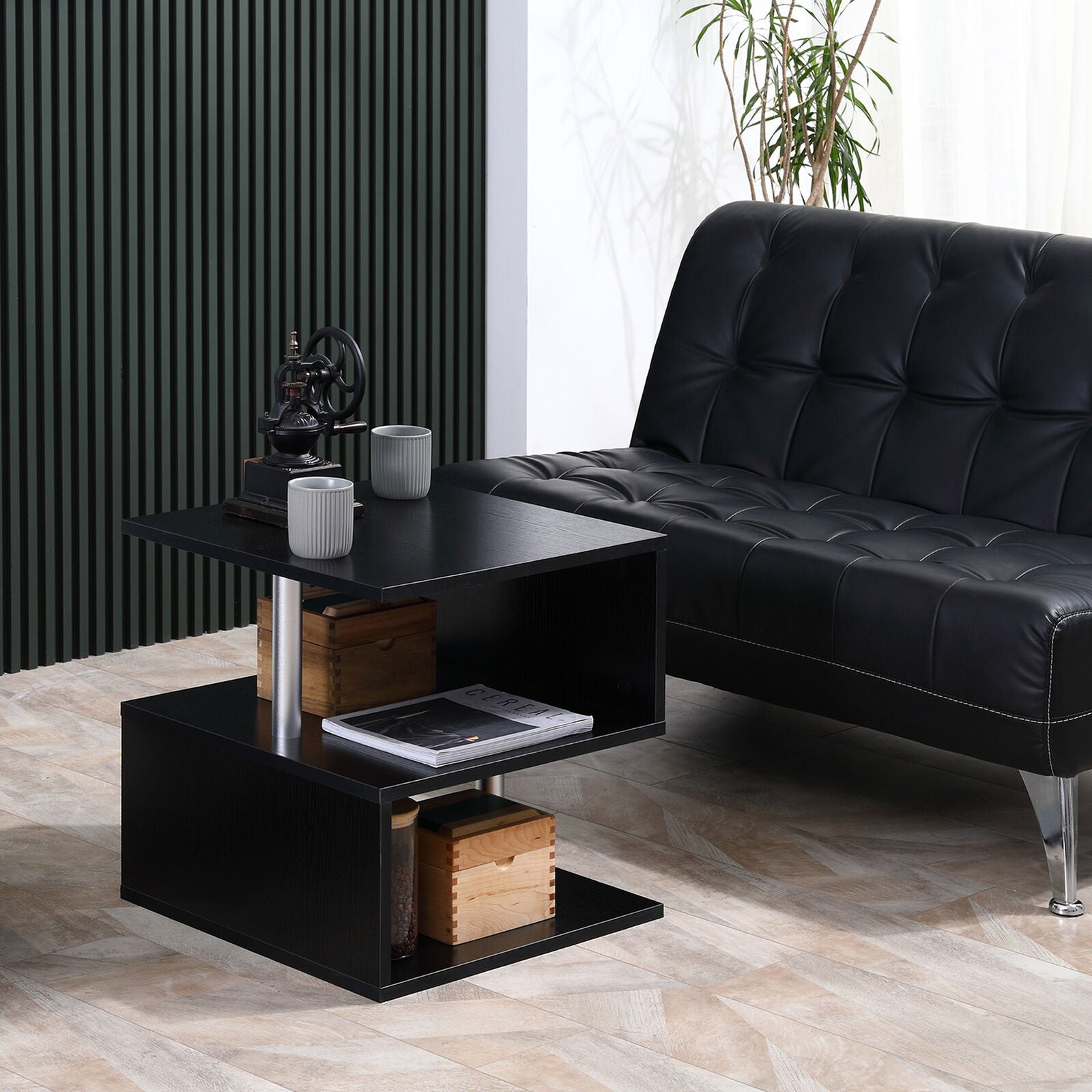 Tavolino Da Salotto Basso con Ripiani Arredamento Moderno in Legno Nero