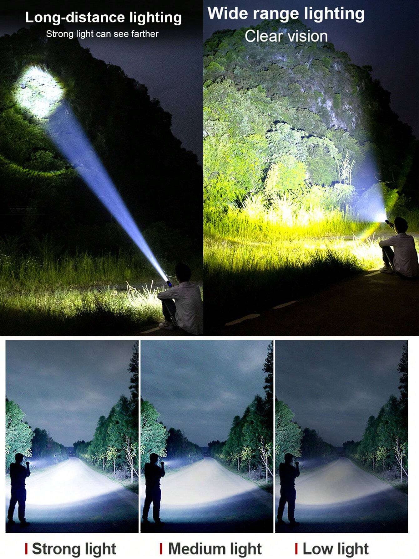 Scegli tra modalità alta per illuminare come un faro, bassa per risparmiare energia, o stroboscopica per sorprendere gli amici.