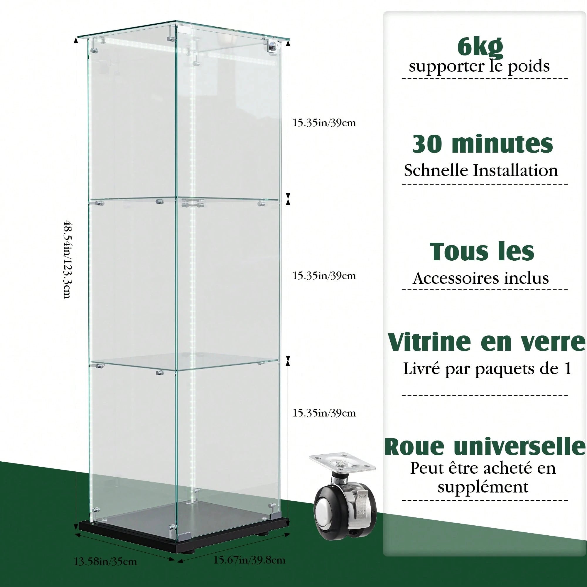 Dotata di 2 ripiani regolabili e anta singola con chiusura sicura, offre protezione ottimale per collezioni, oggetti d'antiquariato e pezzi di valore.
