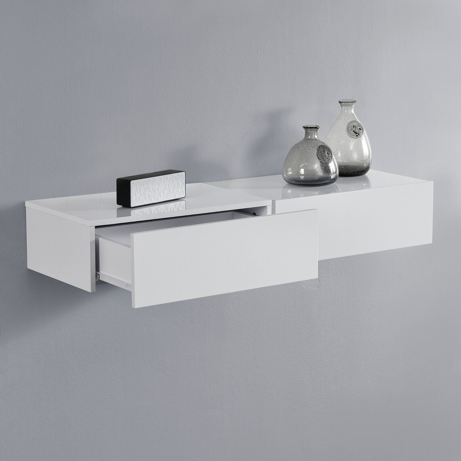 Mensola con Cassetto Pensile Parete Cassettiera Bianco Lucido