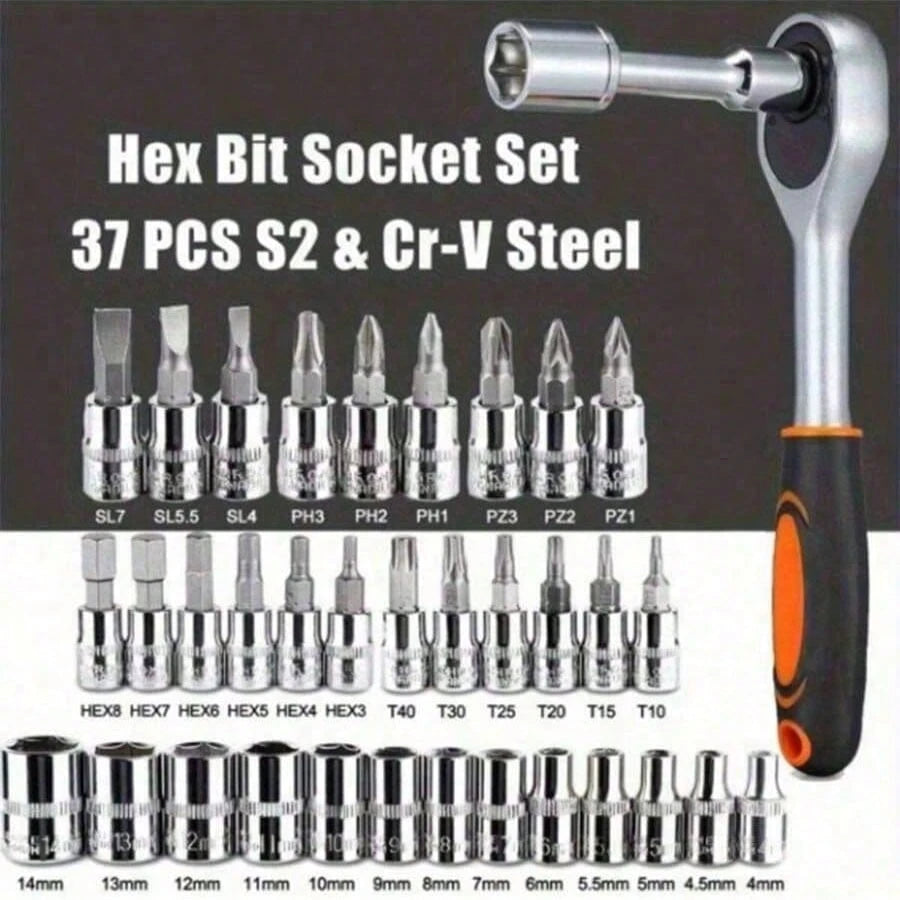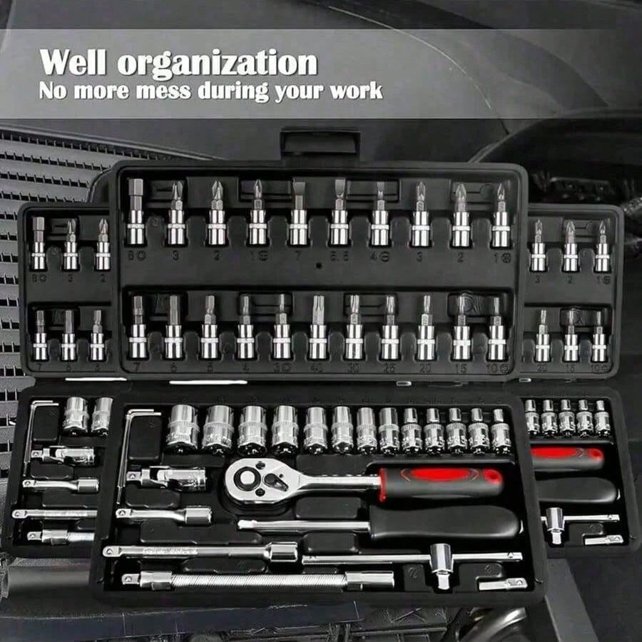 46 pezzi Set di chiavi a cricchetto, kit di attrezzi per uomo con chiavi esagonali e bussole