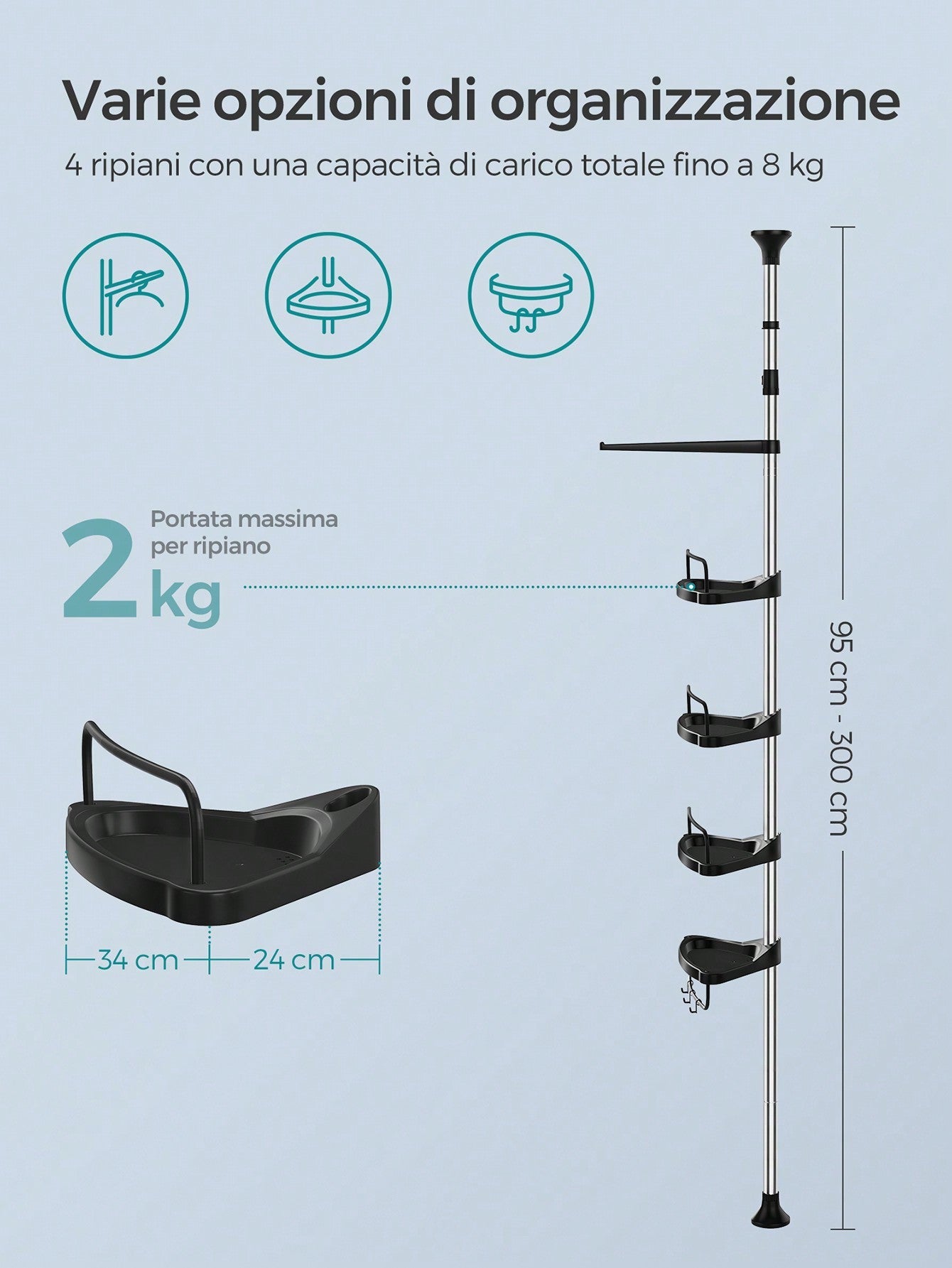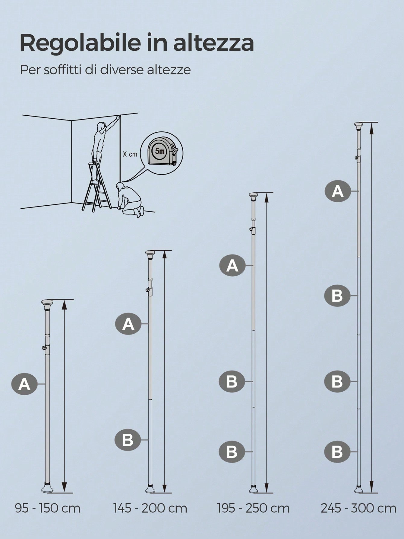 [Per soffitti di diverse altezze] Lo scaffale da bagno è regolabile in altezza (altezza totale: 95-300 cm) per adattarsi a diverse stanze