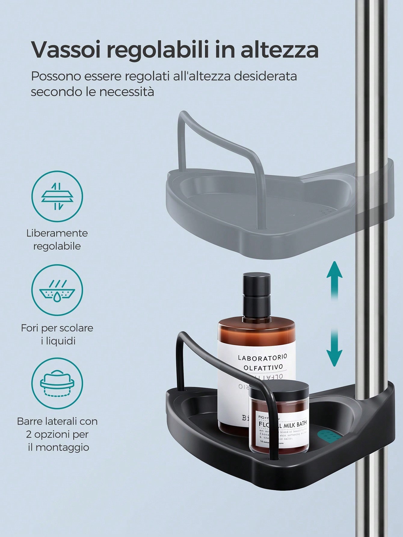 Ripiani regolabili in altezza: Per flaconi di shampoo e gel doccia di diverse dimensioni.