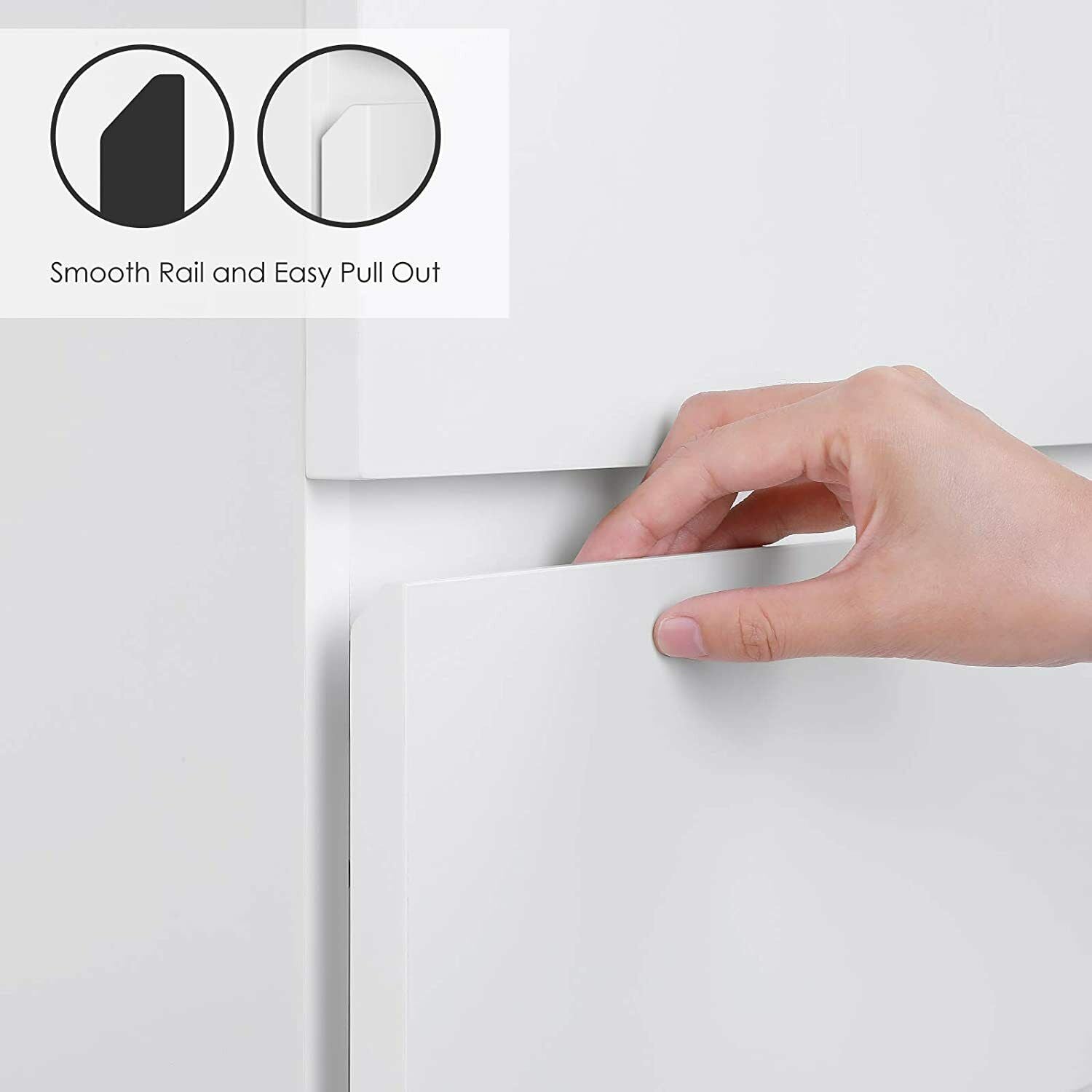 la cassettiera bianca è realizzata in fibra di legno a media densità, impermeabile, resistente ai graffi, stabile e durevole. La struttura stabile impedisce al ripiano di oscillare e cadere!