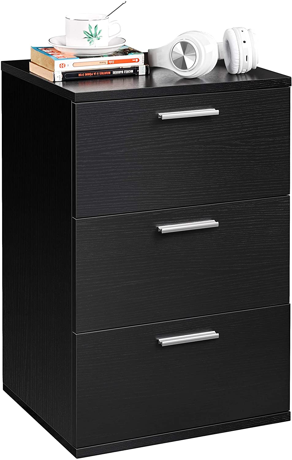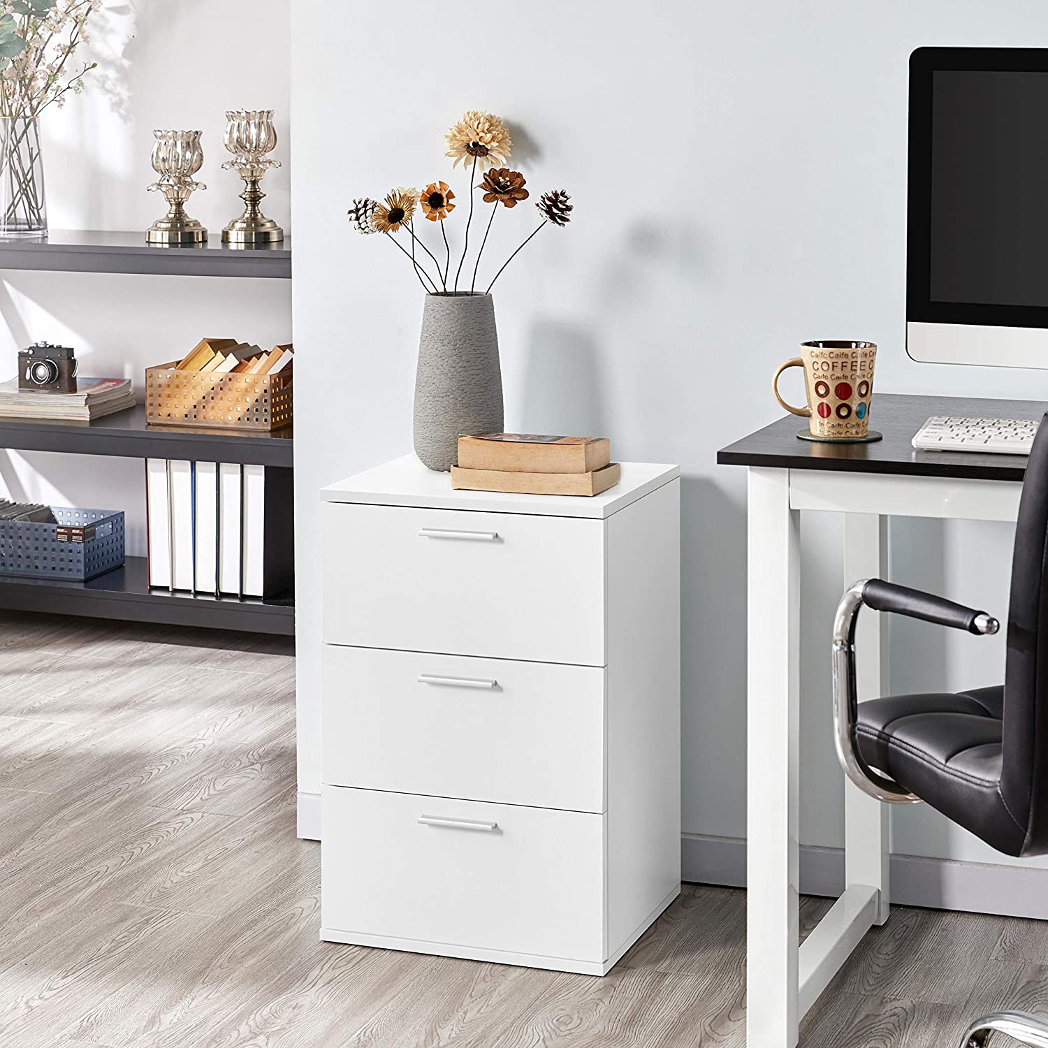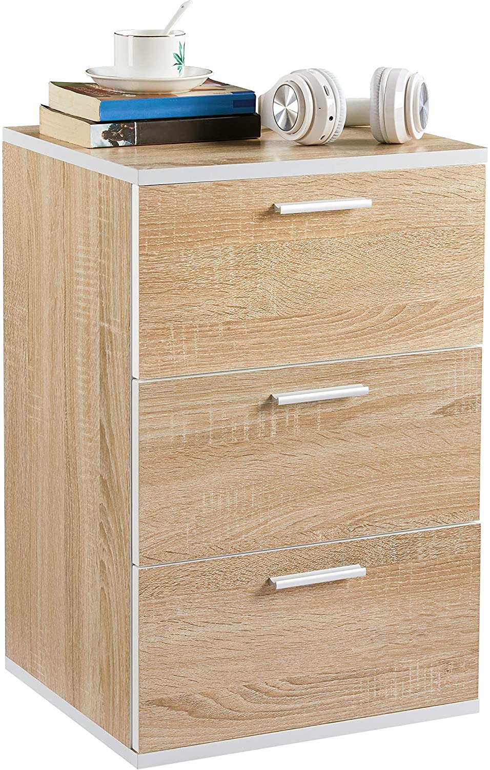 Comodino Camera da Letto Comodino Bianco con 3 Cassetti Cassettiera in Legno