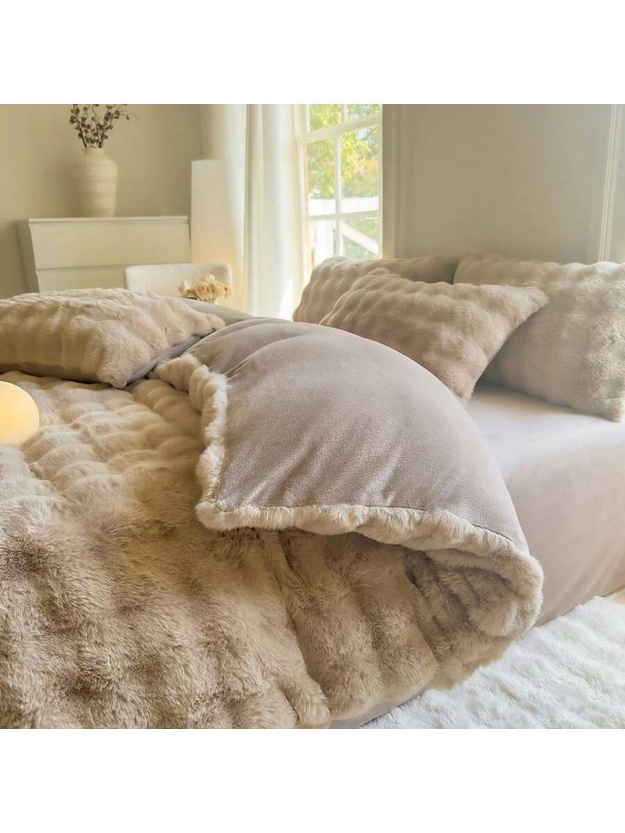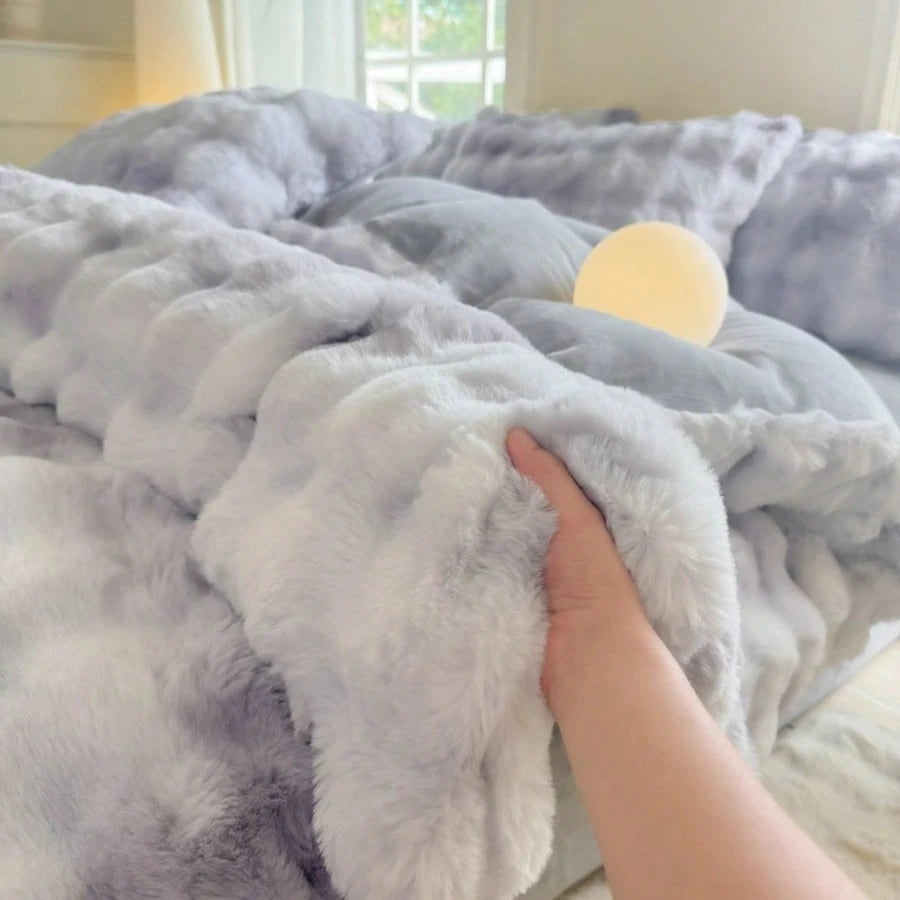Copripiumino imbottito e spesso Copripiumino in finta pelliccia di coniglio morbida