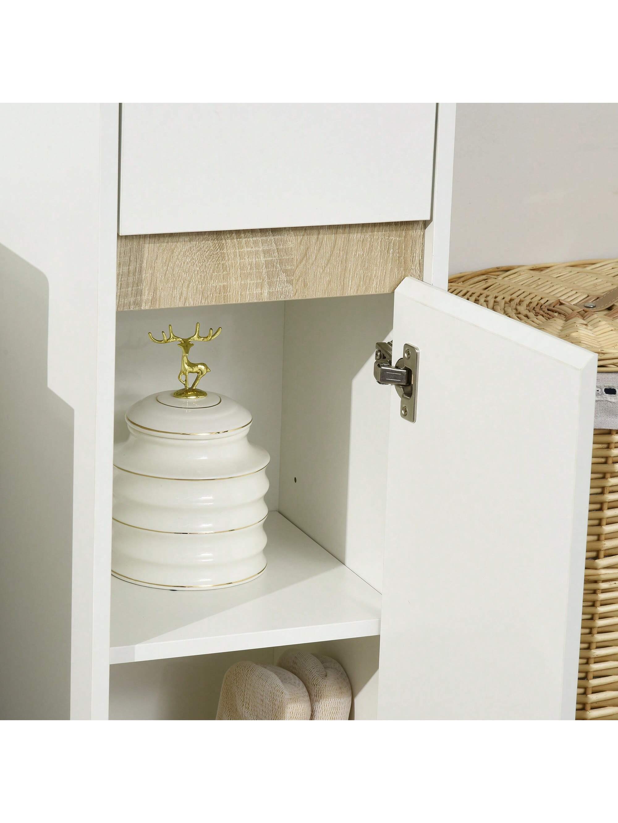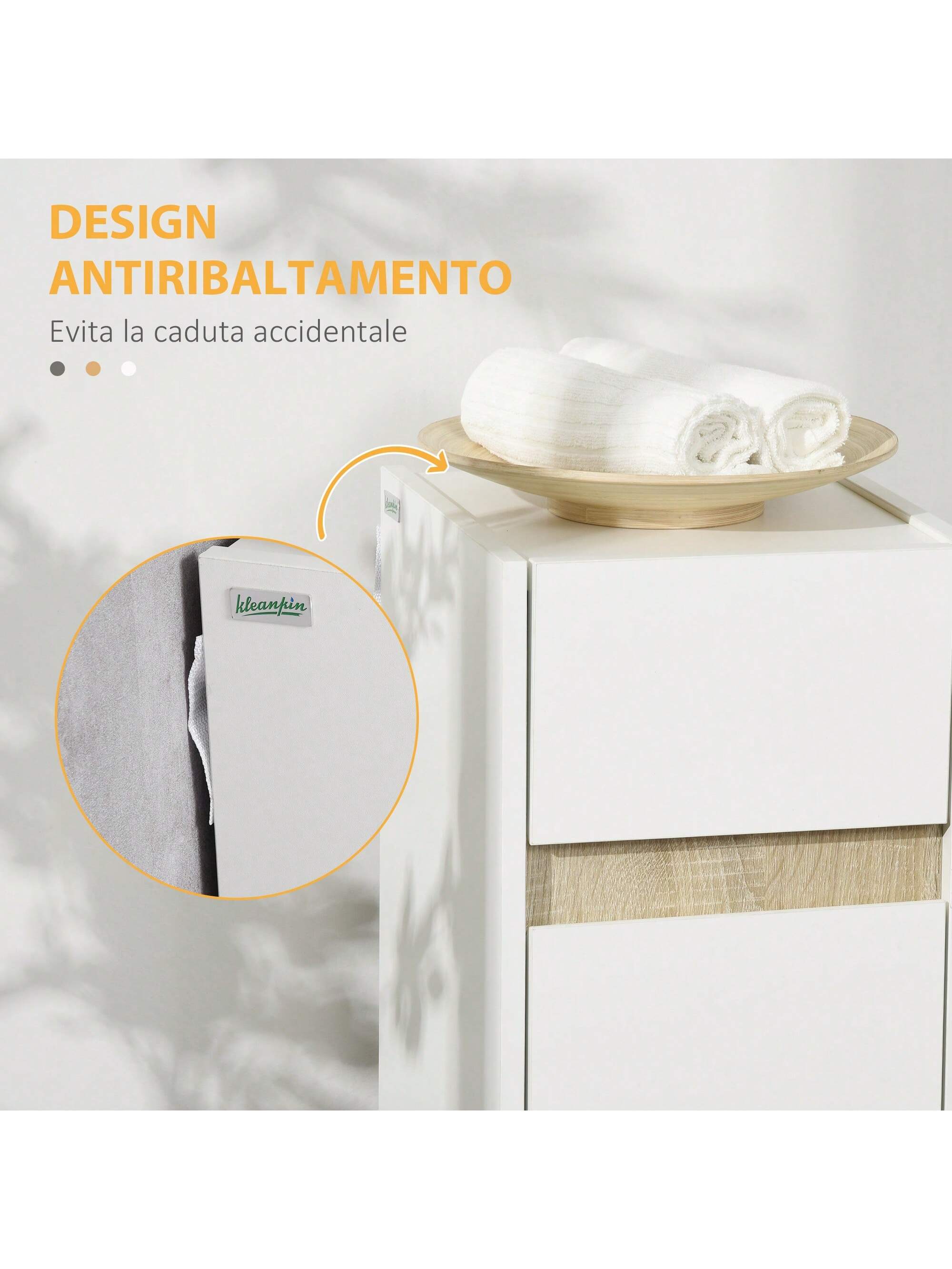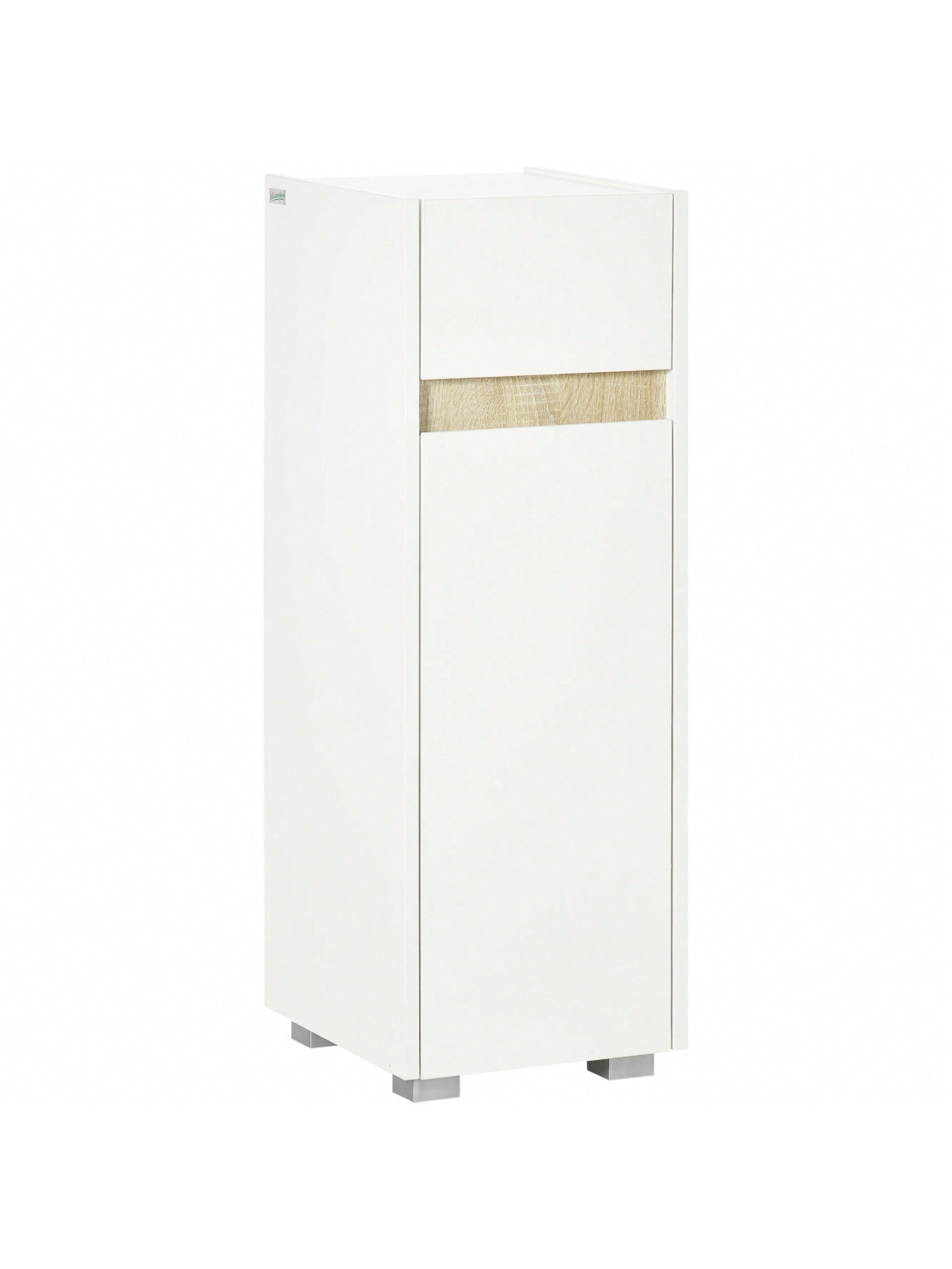 Mobiletto Bagno con Cassetto e Armadietto con Mensola Regolabile, Mobile Multiuso in Legno 30x33x88cm, Bianco