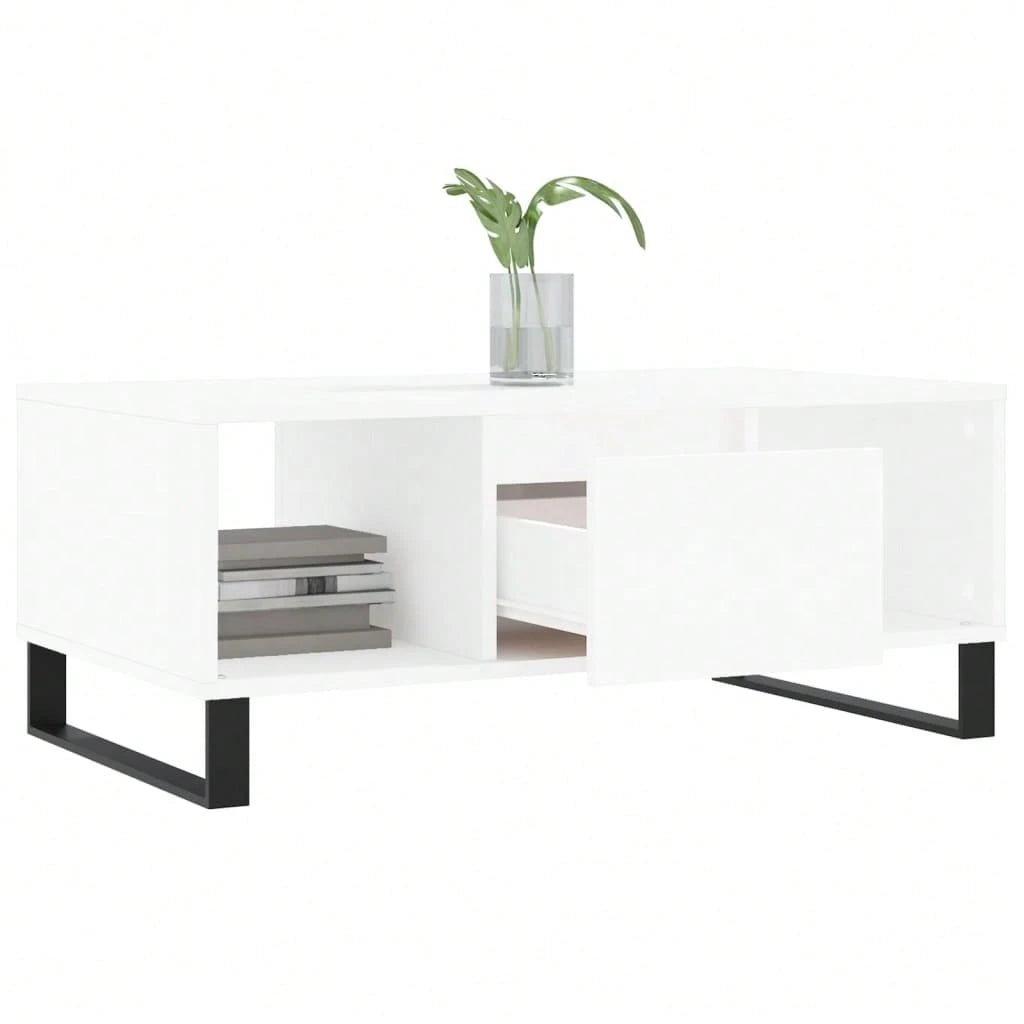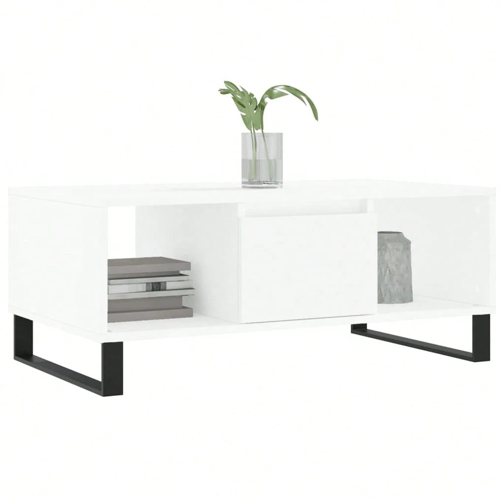 Trasforma il tuo spazio living con questo elegante tavolino da caffè in legno composito. Con dimensioni generose di 90x50 cm e un'altezza pratica di 36,5 cm, offre la superficie ideale per appoggiare bevande, libri e decorazioni.