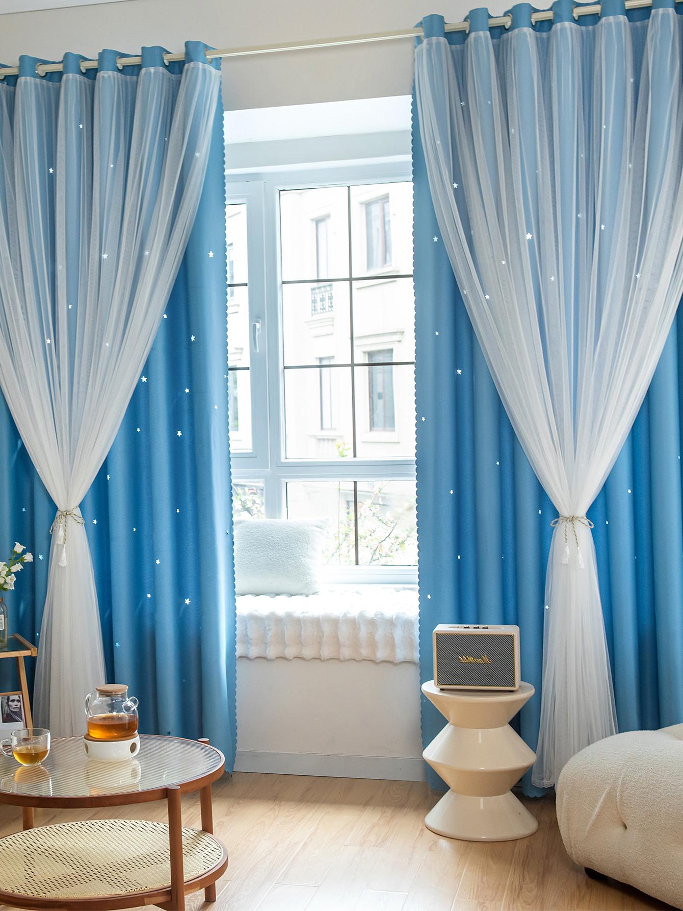 Tenda oscurante per camera da letto e soggiorno scavato stella a doppio