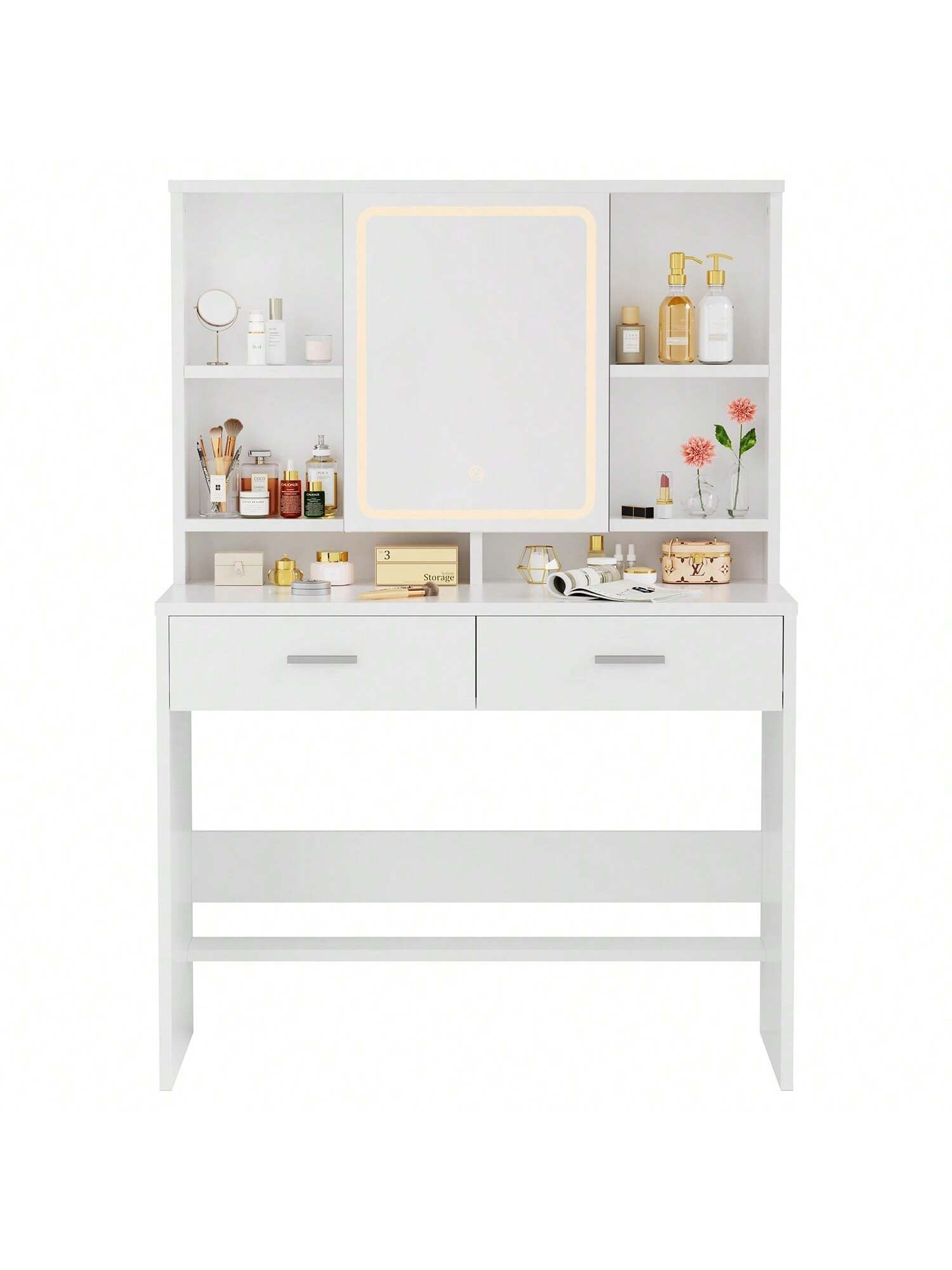 Toeletta con illuminazione a LED 3 colori Luminosità regolabile Cassetti 2 cassetti