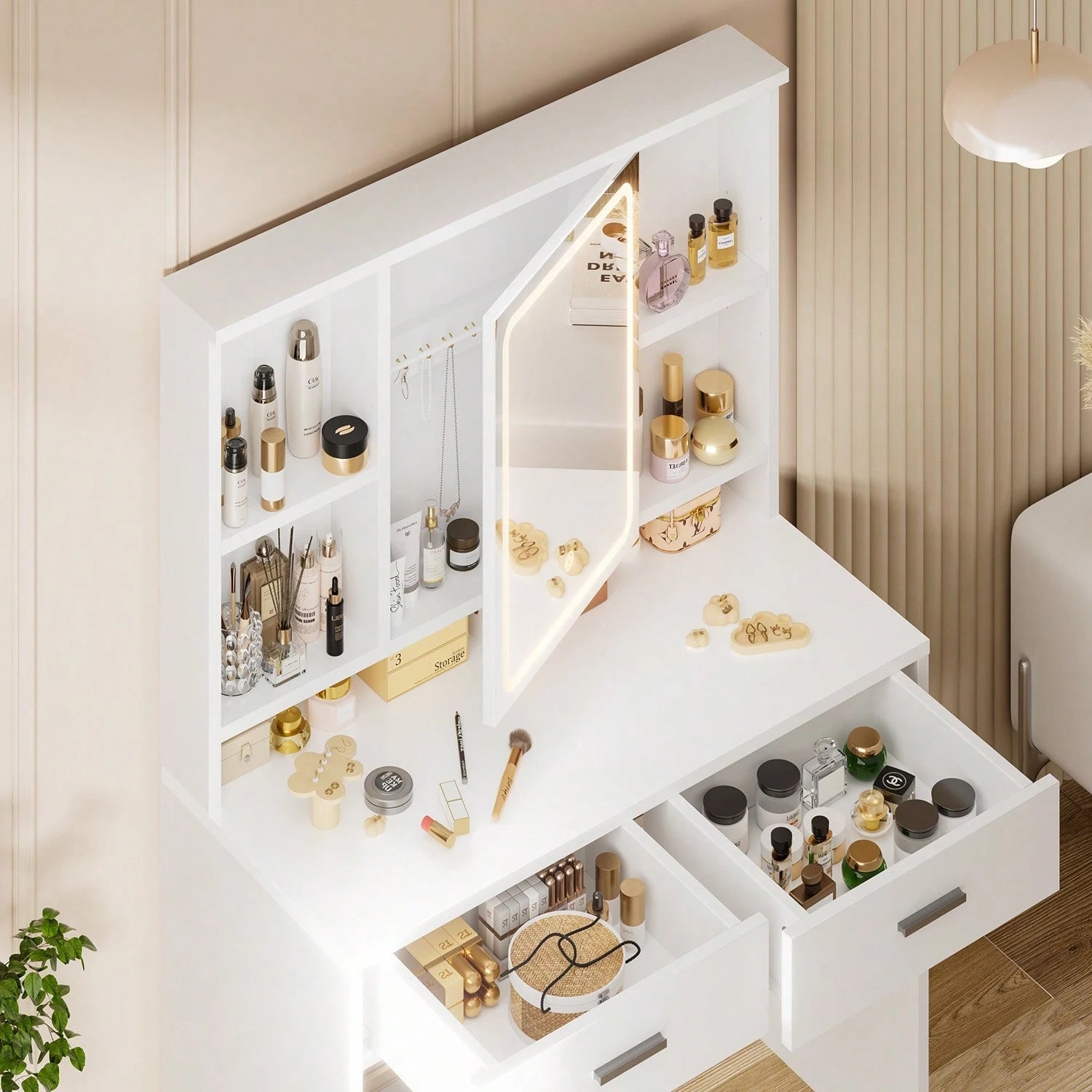 Trasforma la tua camera da letto in uno spazio elegante e funzionale con questa toeletta moderna.