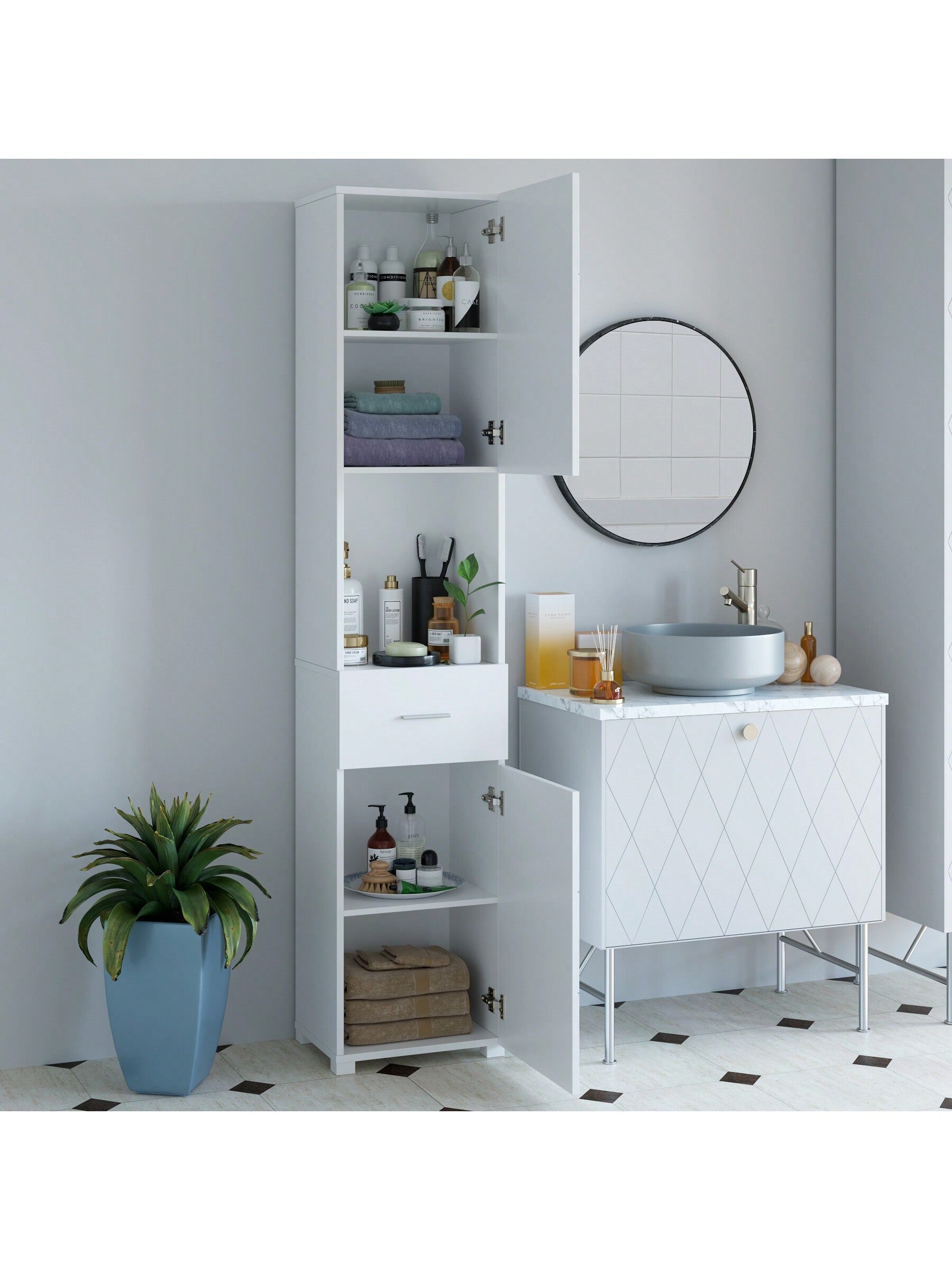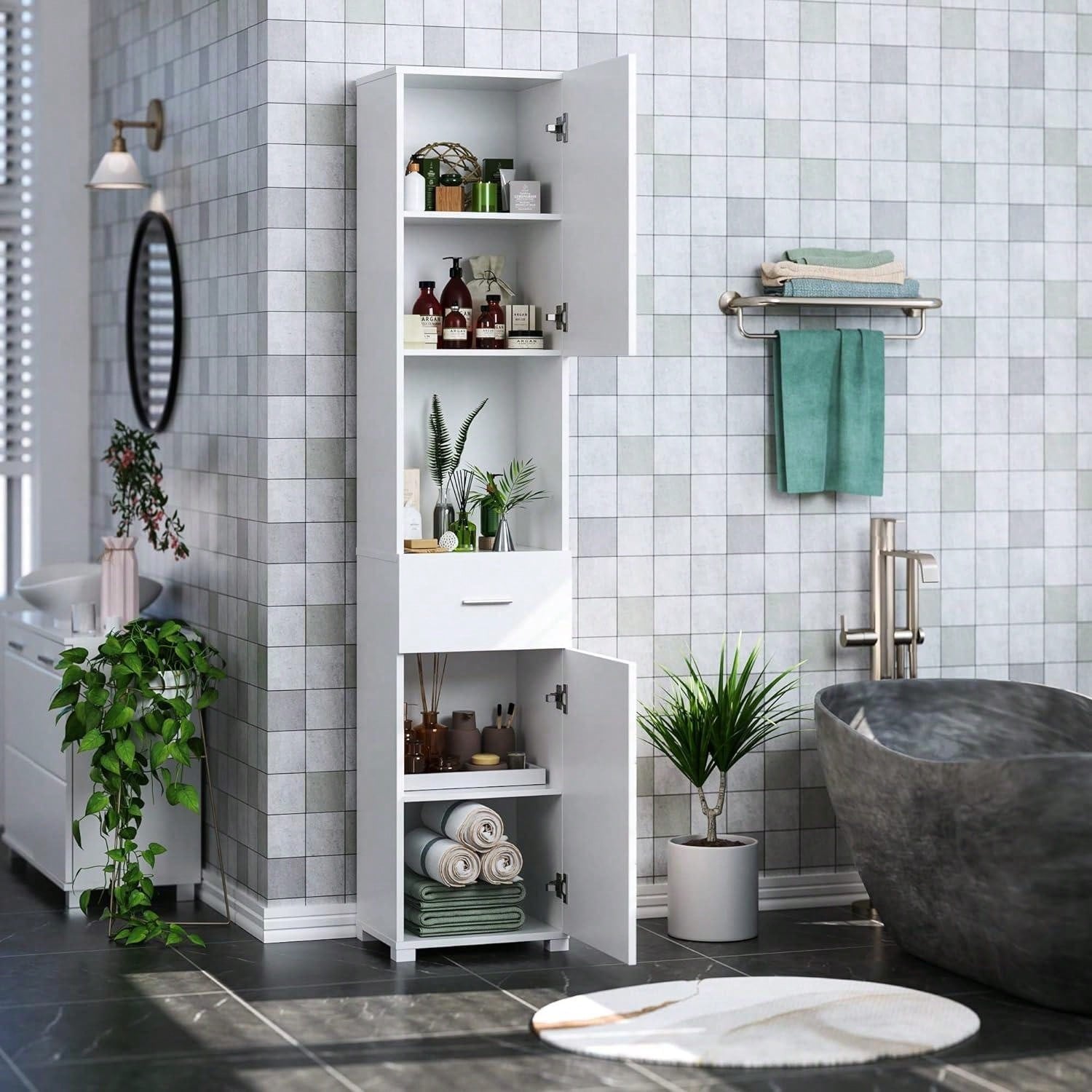 Mobile Alto da Bagno,Mobile Bagno colonna con Ripiano Aperto e Cassetti,per Bagno