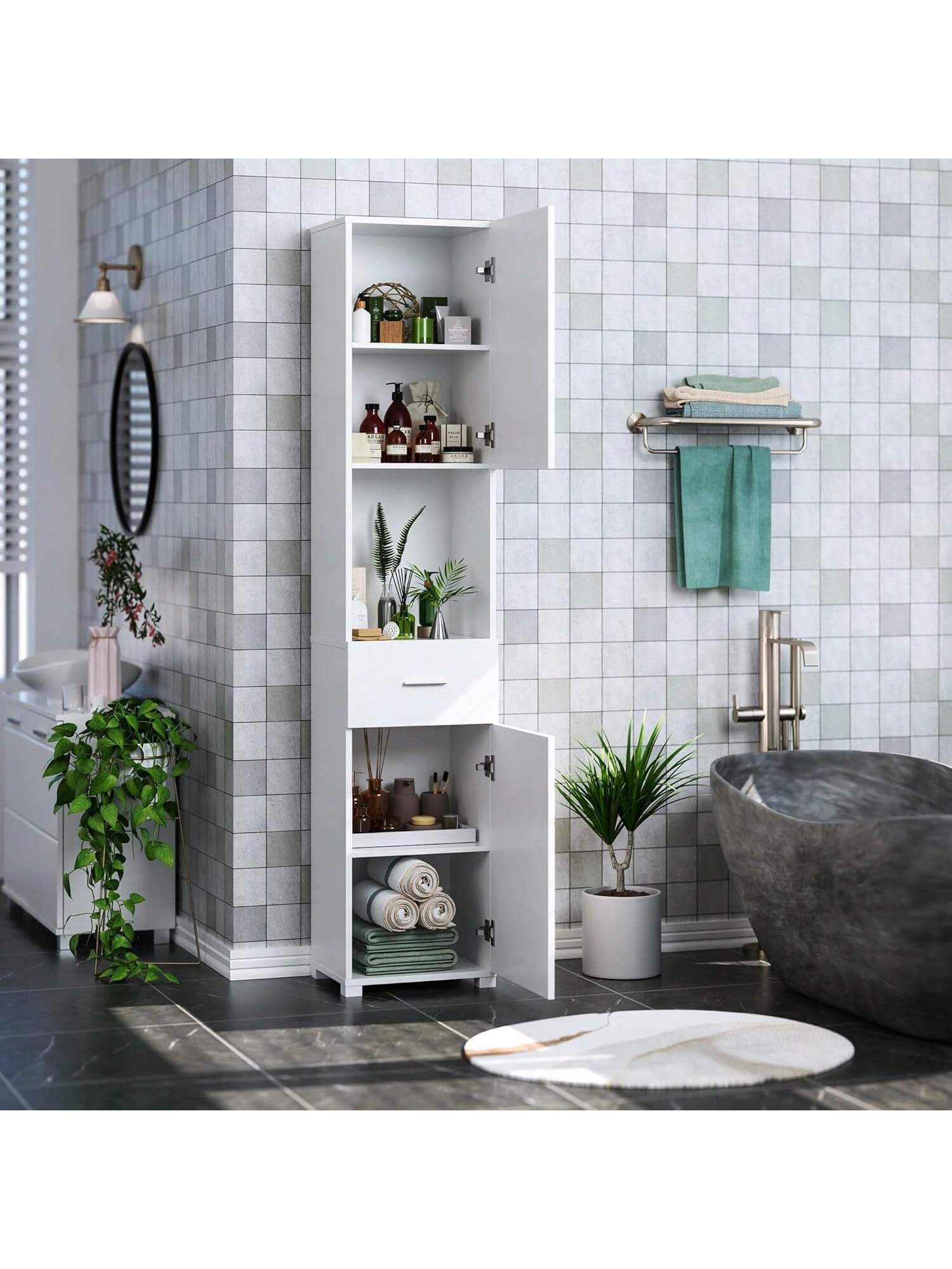 [Multiuso]: questo mobile alto ha un aspetto elegante e può essere utilizzato come mobiletto da bagno, mobiletto da soggiorno, mobiletto da cucina, libreria da lavoro, ecc.