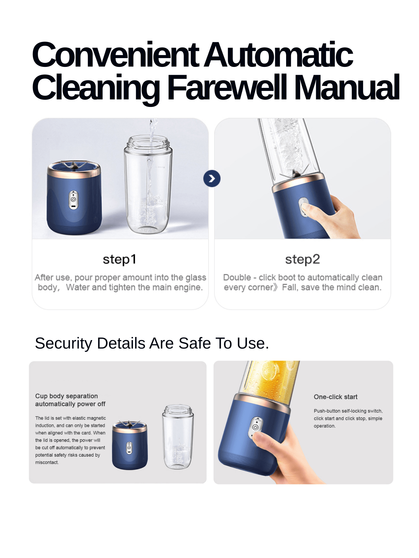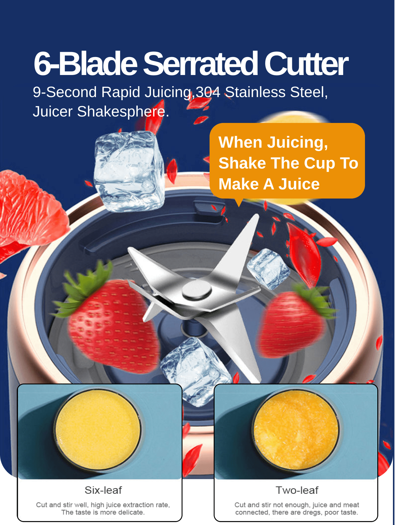 Frullatore portatile ricaricabile di alta capacità con 6 lame per triturare velocemente il ghiaccio