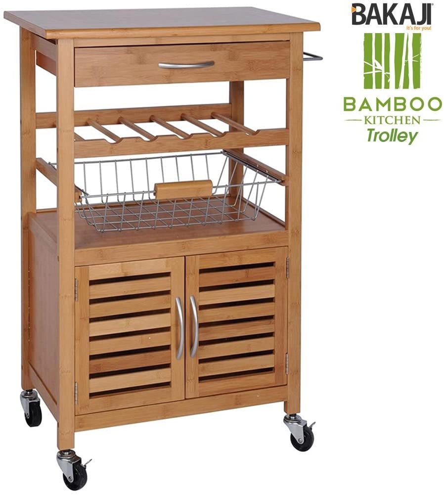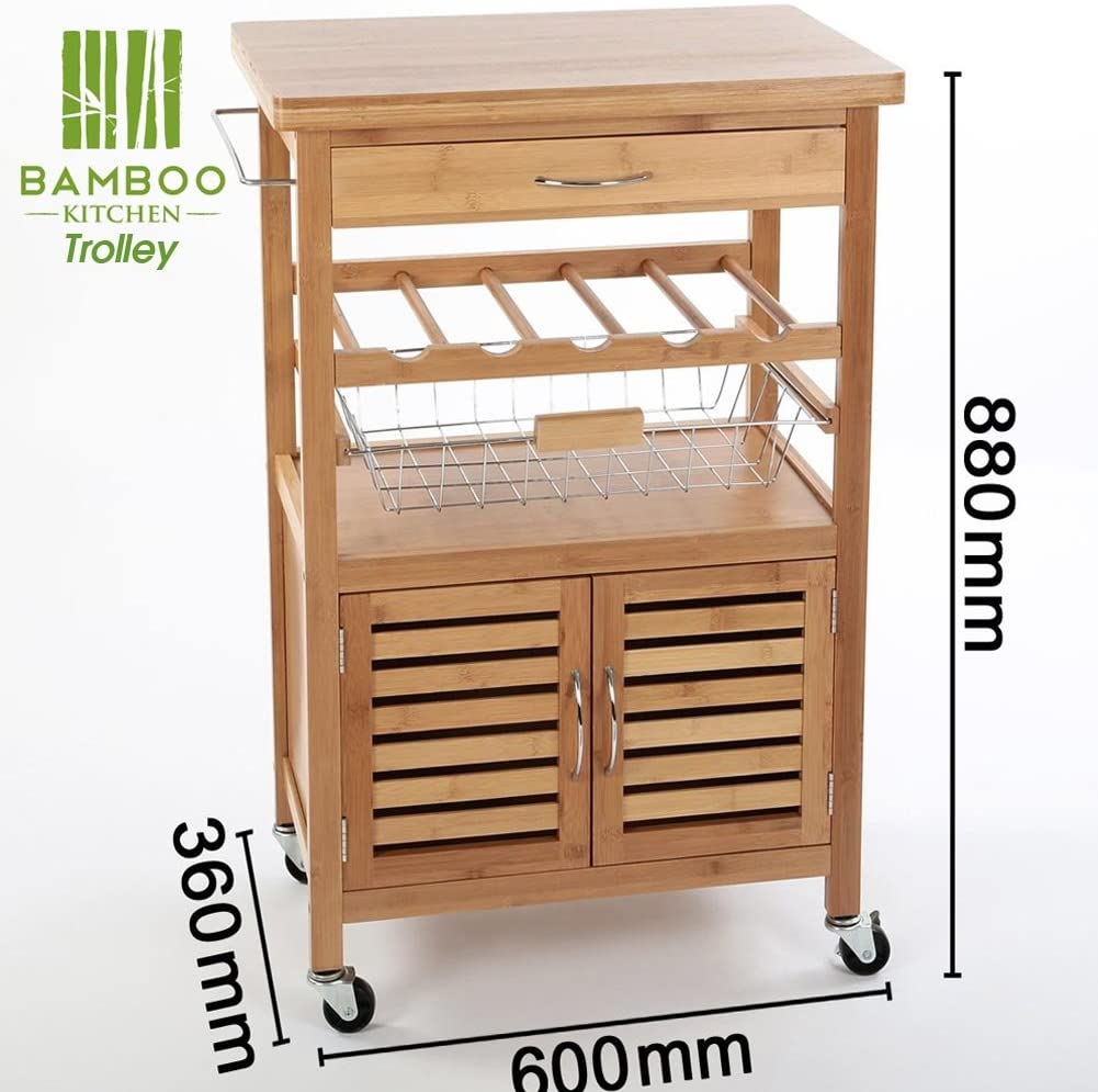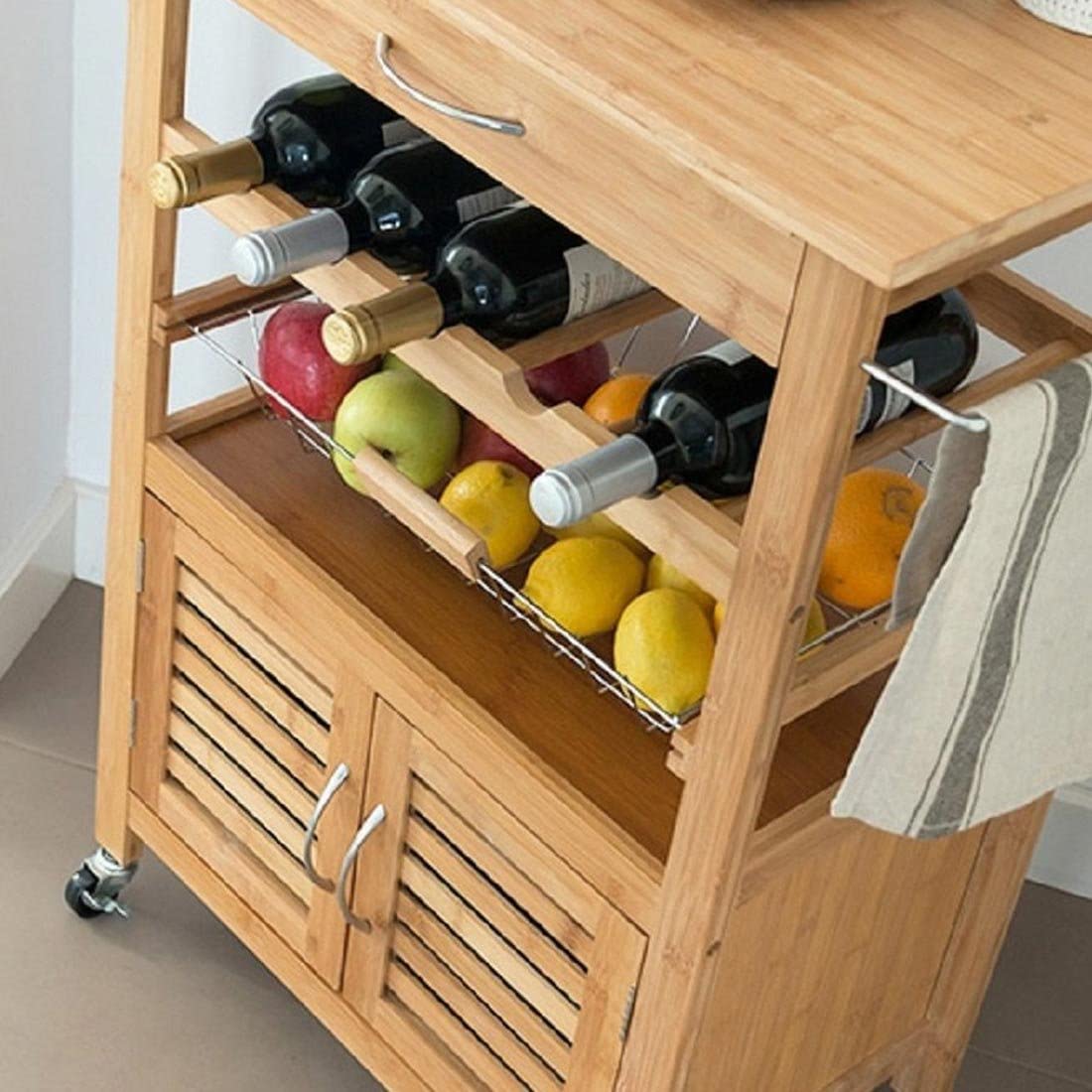 Carrello Cucina in Legno di bambù con Portabottiglie, Cassetto Portaposate Cestello