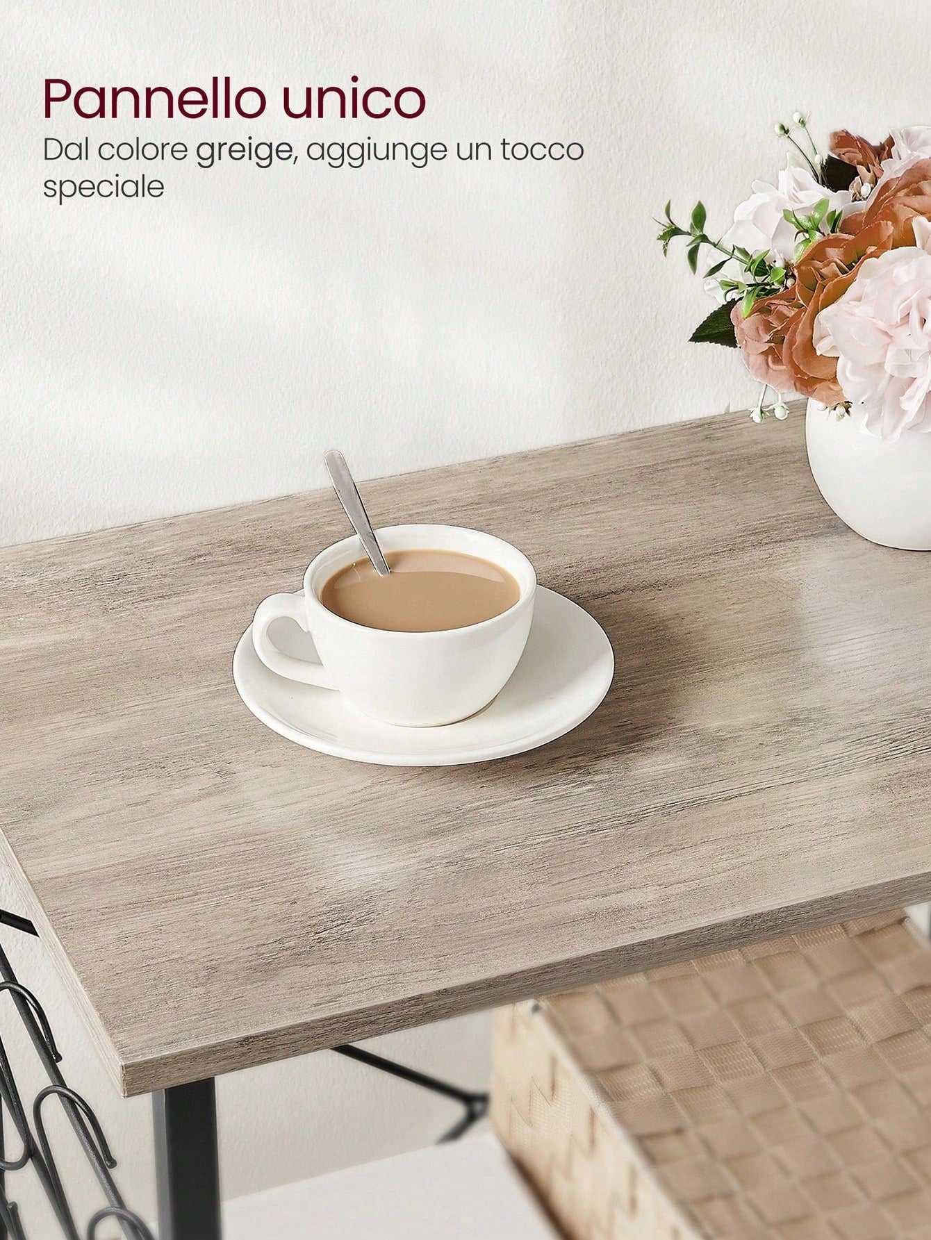 Le rotelle garantiscono mobilità in ogni ambiente della cucina. Finitura bicolore greige e nero si adatta a qualsiasi stile d'arredamento, combinando estetica moderna e funzionalità professionale.