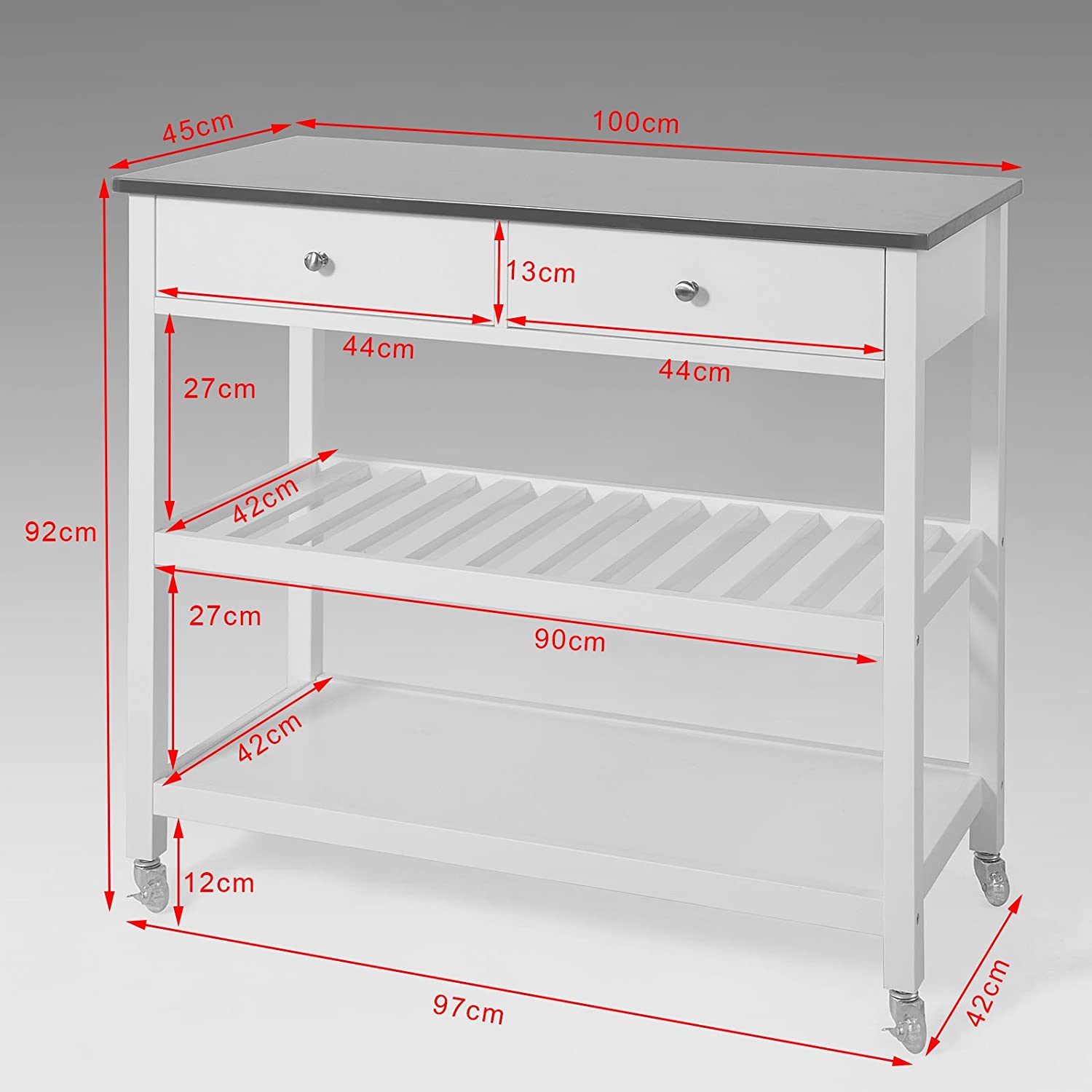 Carrello di servizio con piano in acciaio Carrello di servizio in pregiato legno di MDF e Acciaio inox Misure Il carrello è in misura L100 * P45 * A92 cm, può essere utilizzato anche come tavolo consollo in ingresso o soggiorno Robusto e Stabile Molto robusto e stabile, la carrello...