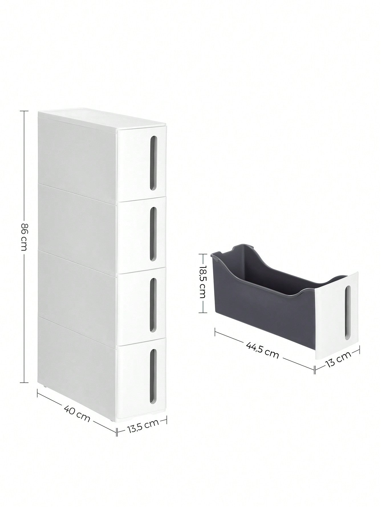 4 cassetti estraibili: 4 cassetti profondi offrono un grande volume di organizzazione da più di 28L; a differenza delle cassettiere di legno o metallo, questi cassetti in PP ti aiutano a dire addio alla ruggine, persino in bagno -