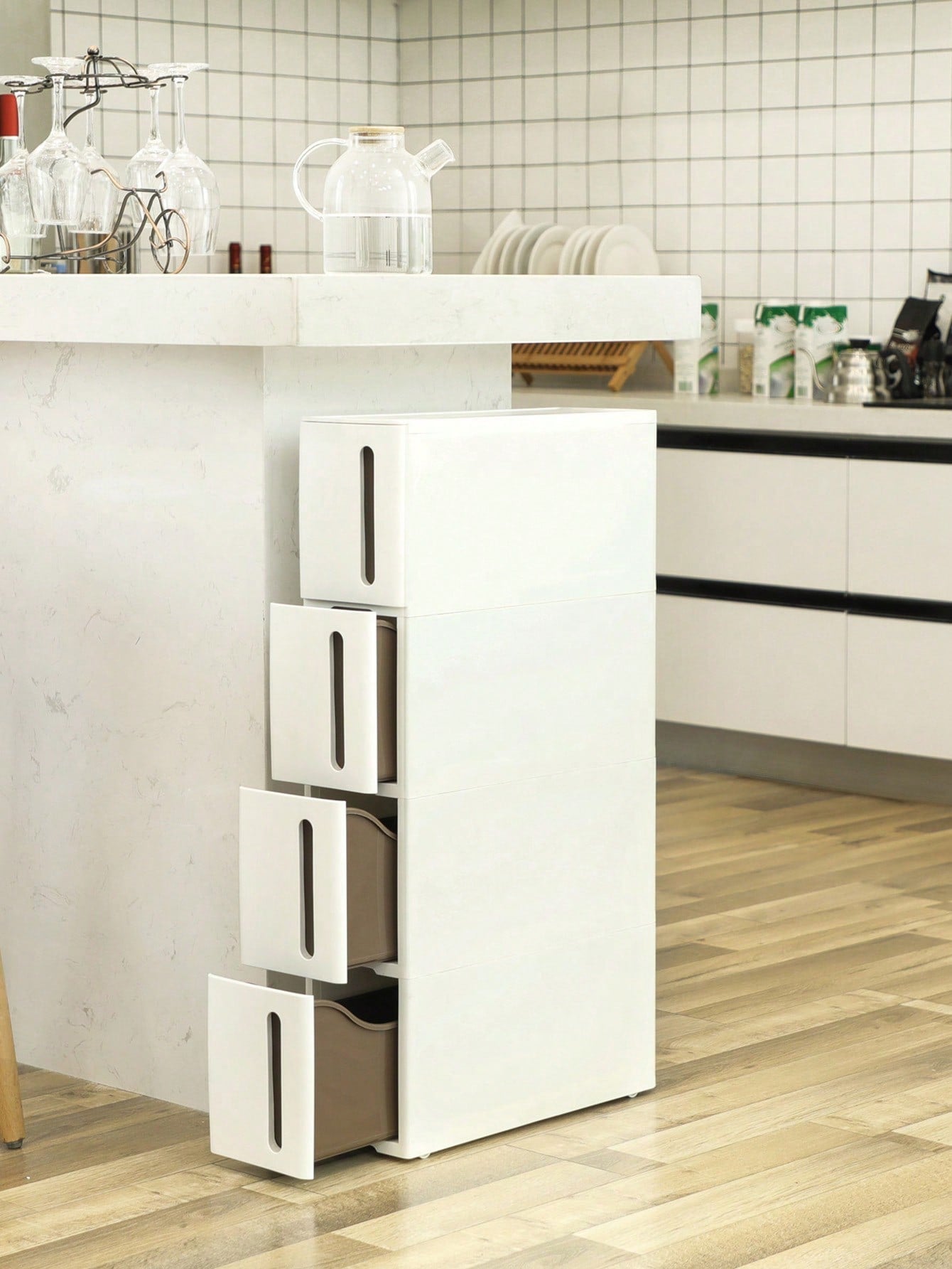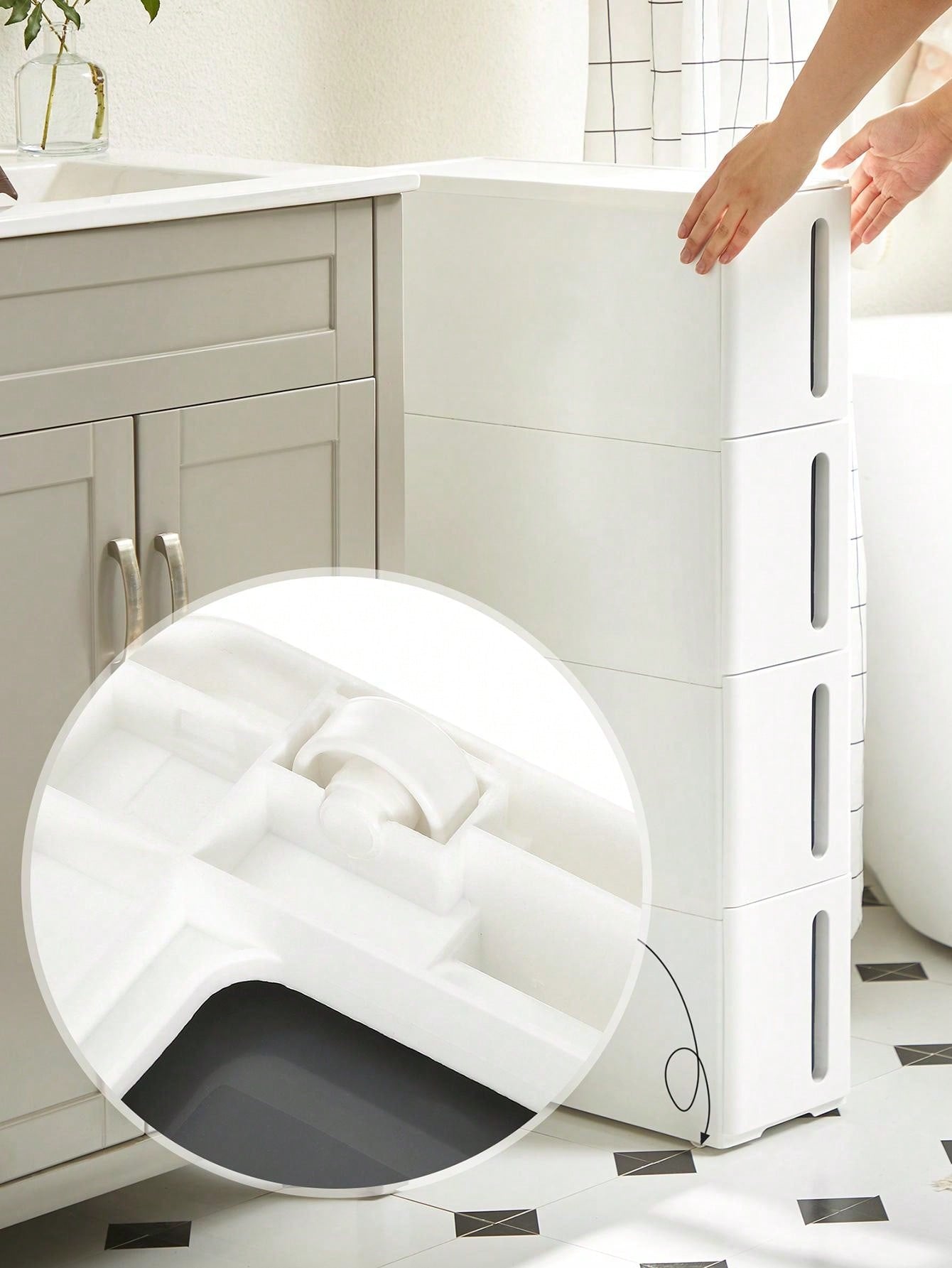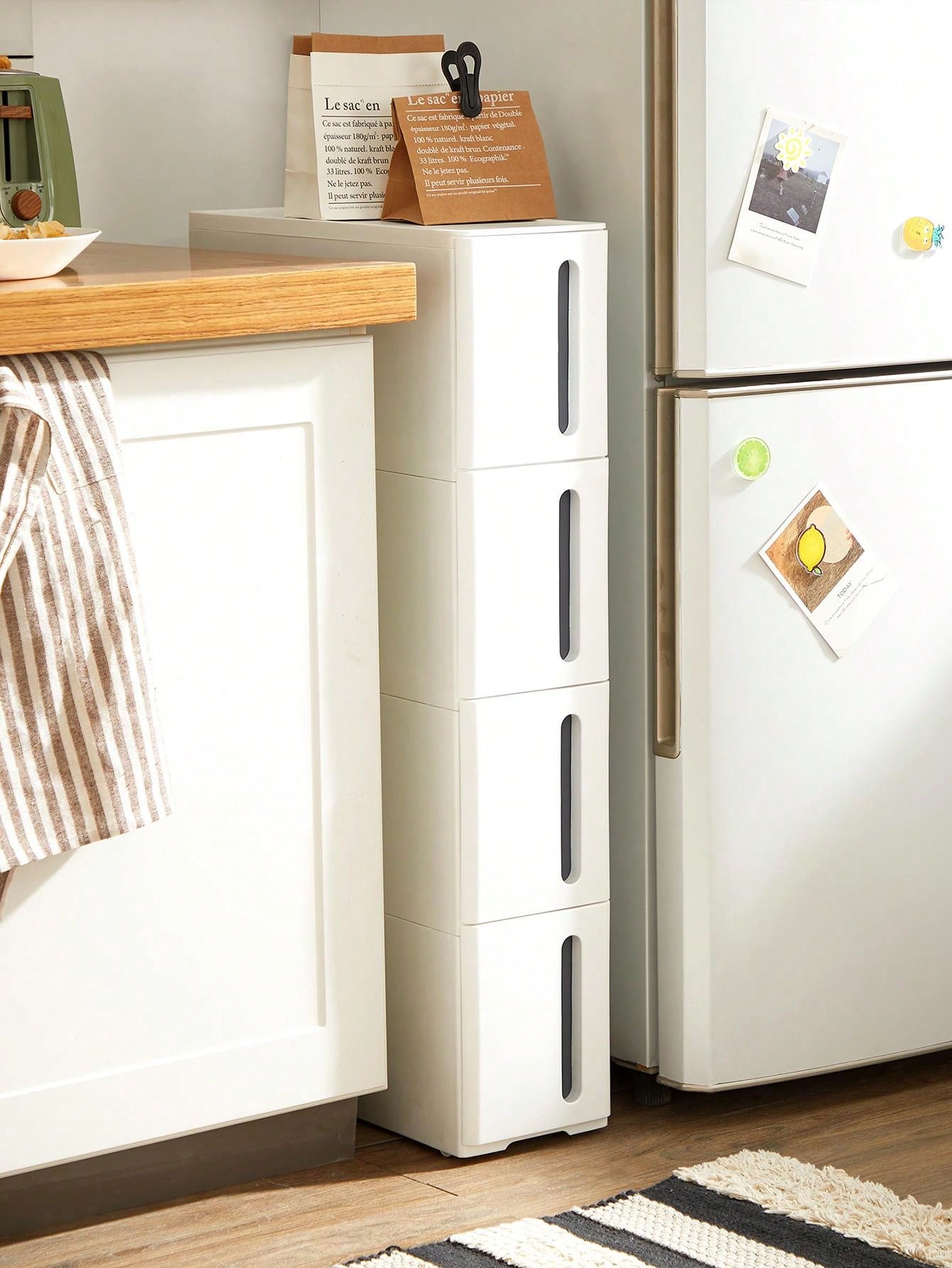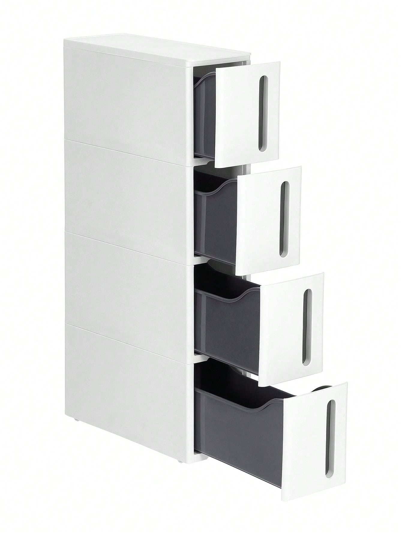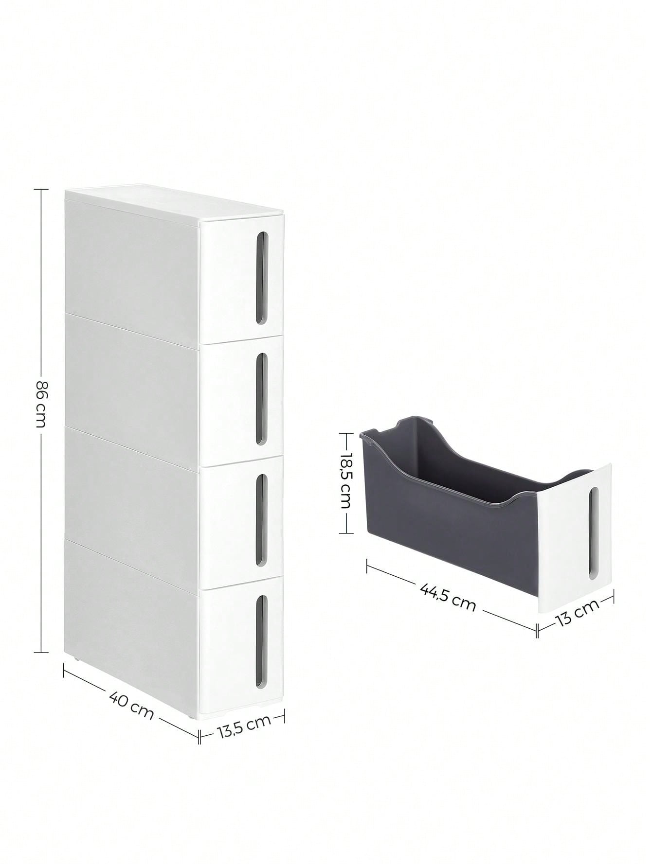 Carrello Mobile Scaffale Portaoggetti Stretto con 4 Cassetti Carrello da Bagno Organizzatore per Cucina con Rotelle Rimovibili