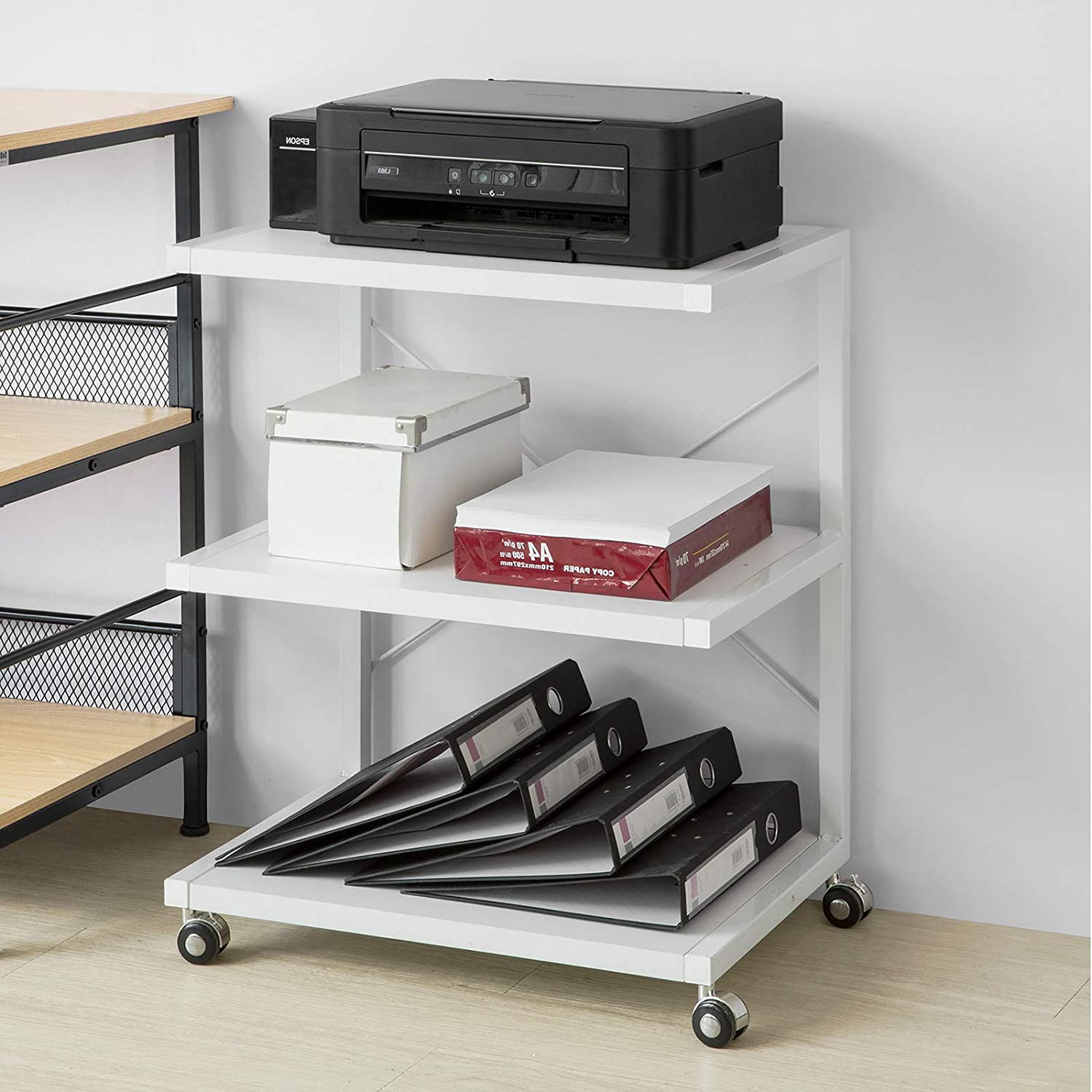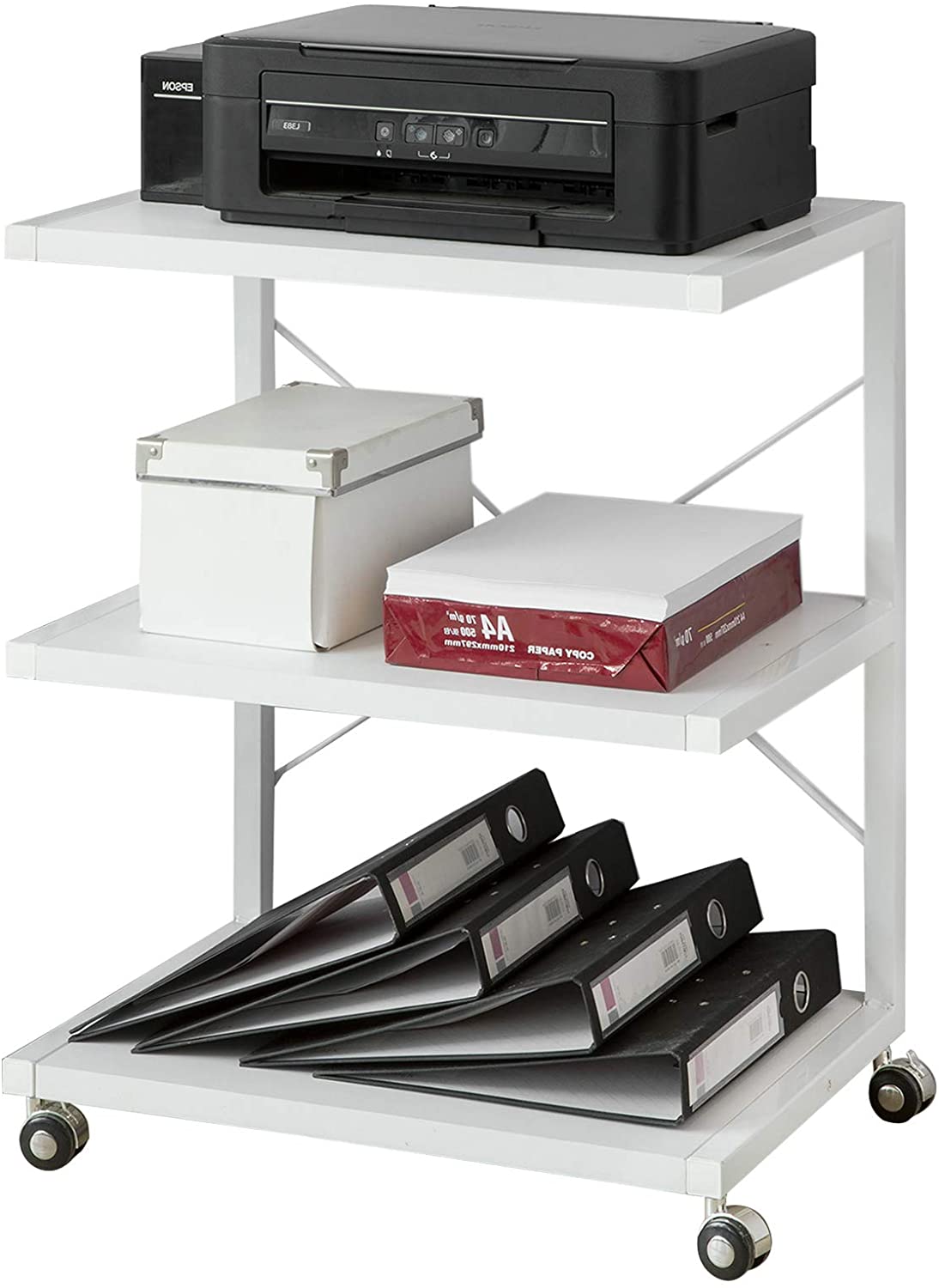 Carrello Porta Stampante con Ruote salvaspazio Tavolino con rotelle 3 Ripiani