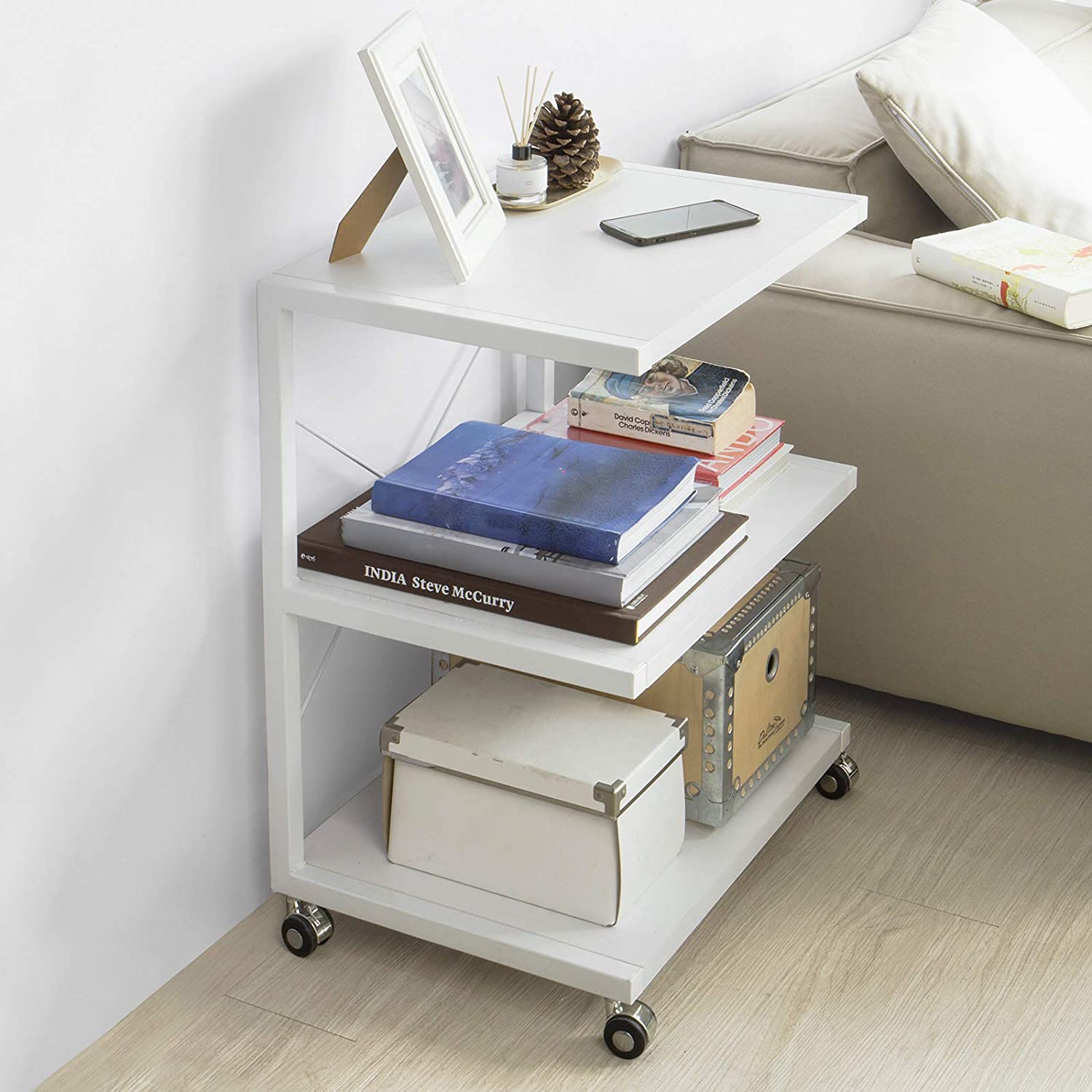 Spazioso, capiente e molto robusto.Con ruote piroettanti, che consentono di spostare questo carrello facilmente su ogni superfice. Maccina del caffè, bevande, stampante o semplicemente come libreria. Ideale per trovare un posto ad ogni cosa!La soluzione perfetta per tenere in ordine l'ufficio, il soggiorno o la cameretta.Resistente, leggero, salvaspazio.